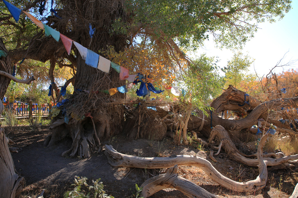 在786县道中下段,有一条没有景区牌的小路通向神树,据说是牧民自家景点,神树就生长在广阔的天然林中,据科学家测定,这棵胡杨树树龄已近千年,并有着动人的故事,在网上可以找到答案,从神树再行五十公里的315省道就是我们今天要去的策克口岸。