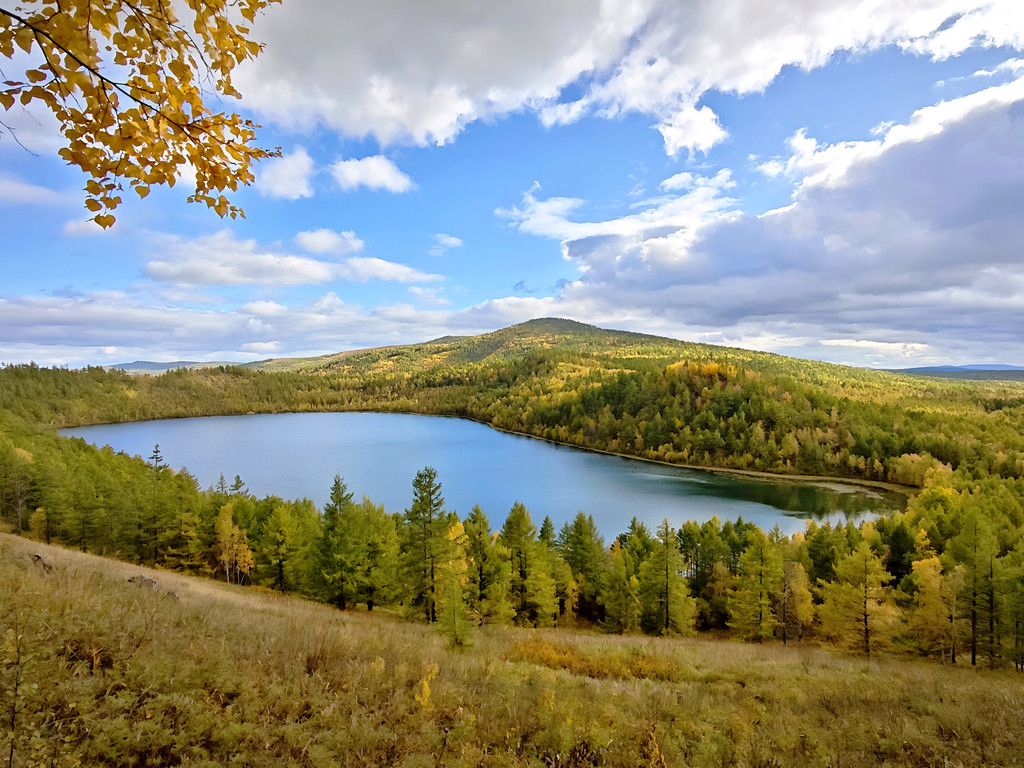 植被方面,属寒温带针阔混交林,以兴安落叶松为主,偃松、桧柏等相伴而生,秋季层林尽染,一片金黄绚烂。