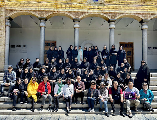 在火神庙博物馆参观时,还巧遇伊朗当地一个学校的学生们也到此参观,她们热情地向我们喊着:“你好!你好!”于是,团友们与她们在博物馆前留下了一张大合影。
