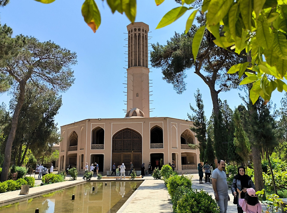 坐落在园林中的风塔是不仅伊朗最高的风塔,也是世界最高的风塔。其高达33米,平面呈八角形。风之塔超过屋顶的部分四面镂空,无论风向来自何方,都能被引进塔中,并透过室内外温差产生的压力将气流循环到室内。