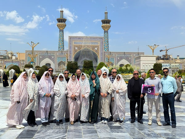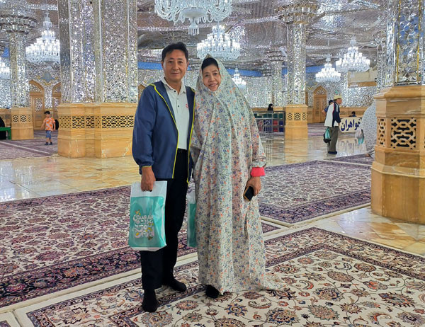 来礼萨陵园参观瞻仰,是不能带专业照相机的,但是可以使用手机。团队在此,全程都有宗教警察友好的监督。女宾入内必须裹上长袍,不能化妆。全程一路陪伴我们参观的宗教警察非常友善,工作也特别认真。