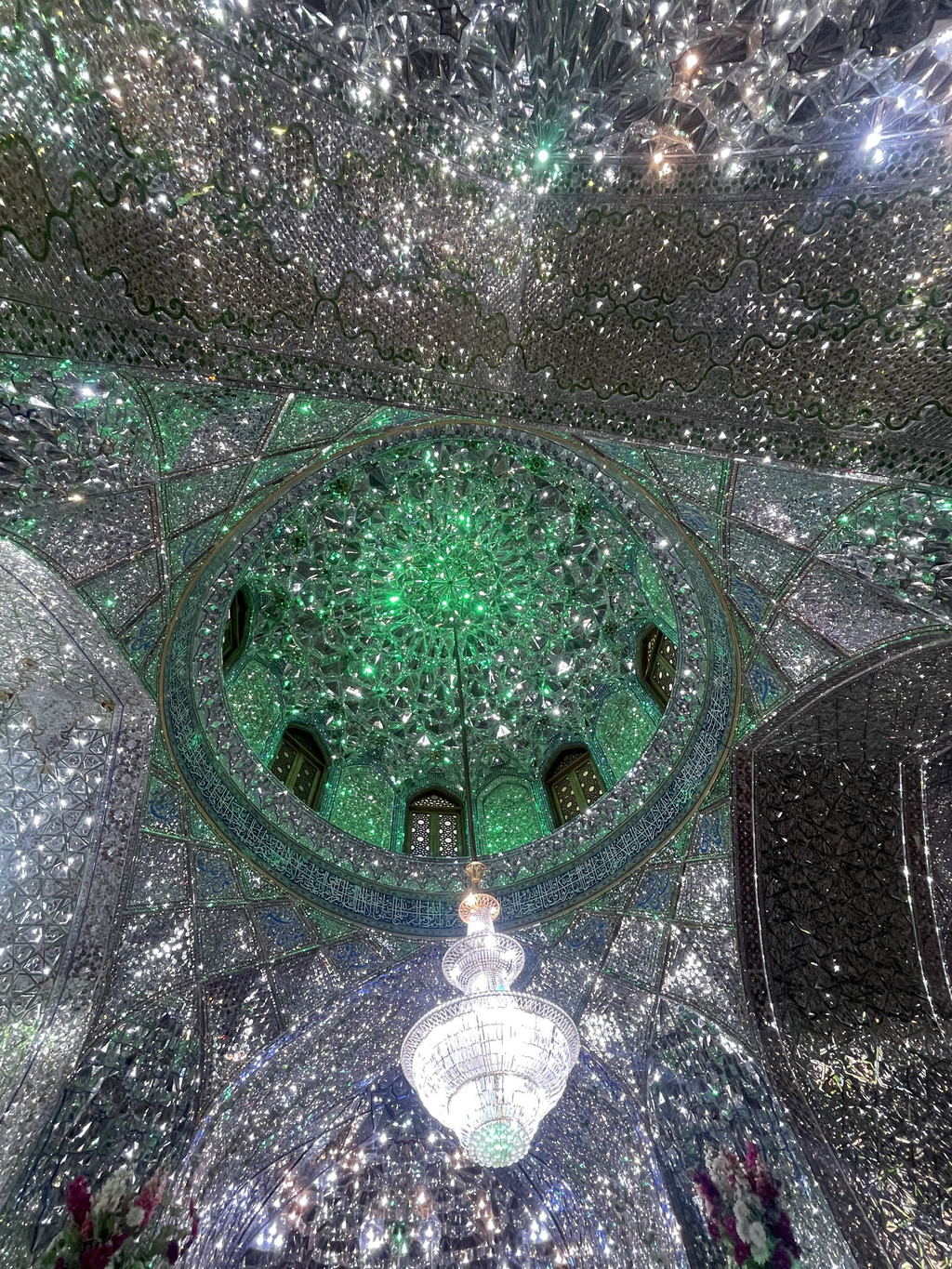 霍梅尼陵园。从外观来看是一座现代伊斯兰风格建筑,金碧辉煌,仅外观就惊艳到了。我们到达时是凌晨6点左右,据说是24时开放。入内参观,穹顶下的绿色琉璃瓦房内安放了霍梅尼的遗体。整座建筑立柱不多,跨度较大,蔚为壮观。这让我想起了印度的泰姬陵,一座纯白的大理石建筑,十年前曾与腌菜一同拜谒。