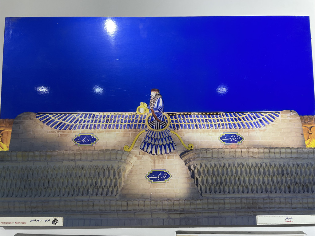 阿胡拉·马兹达(Ahura Mazda),古伊朗的至高神和智慧之神,被尊为“包含万物的宇宙”。公元前600年前后,琐罗亚斯德(Zoroaster)发起宗教改革,将阿胡拉·马兹达奉为“唯一真正的造物主”。琐罗亚斯德宣扬,是阿胡拉·马兹达使人们看到了光明,所以他常常被塑造成太阳的形象。然而太阳和月亮有时会被形容成他的双眼。琐罗亚斯德教(Zoroastrianism)认为火具有净化万物的特性,阿胡拉·马兹达可以用火来分辨善恶并将真理之火赐给信众。