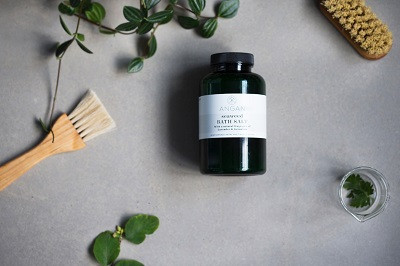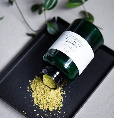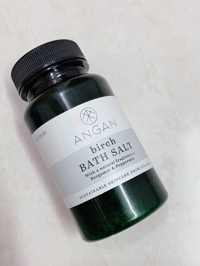 ANGAN 桦木浴盐,小绿瓶的外包装,质感高级,方便携带,看起来就很有北欧风格。