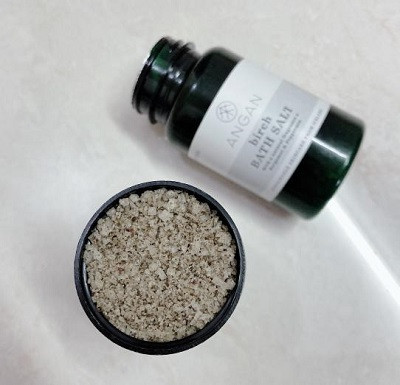 ANGAN 桦木浴盐气味清新独特,闻起来特别舒服,充满了大自然的气息。浅绿色晶状小颗粒质地,颗粒大小均匀,沐浴使用时溶解快速。浴盐颗粒与肌肤接触时自然融合不伤肤,清爽不油腻,感觉整个人清爽自在,长期使用下来身体多余的油脂污垢都去除干净了,皮肤变得水润有活力,前胸后背的痘痘粉刺、疙瘩、鸡皮肤状况明显减轻了。原来一直困扰的肌肤问题竟然搭配这款浴盐洗澡得到缓解。