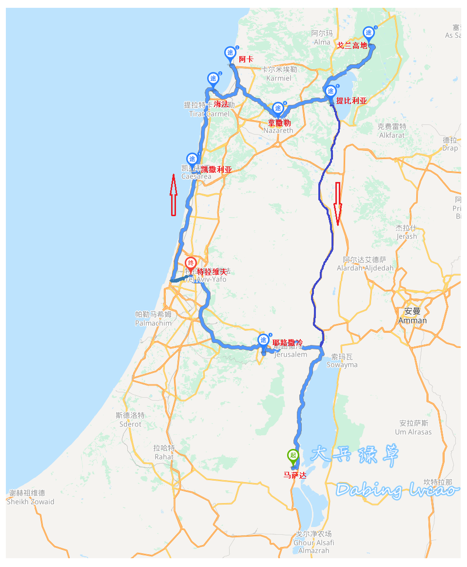 图—2 2019年冬以色列、约旦自由行自驾路线图