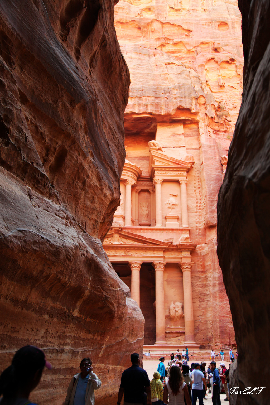 从峡谷到神殿也有相当一段路途(相当于进城),西克峡谷,但比较凉快,随时也可看到红色峭壁,当沉浸在峡谷的壮丽中时,一个转角,高耸的神殿映入眼帘,神殿完美的嵌入在石壁中,就好像它原本就应在那里。一层入口的纯金大门和内部藏品已经被罗马士兵掠走,空留一座建筑向大家述说它曾经的辉煌。