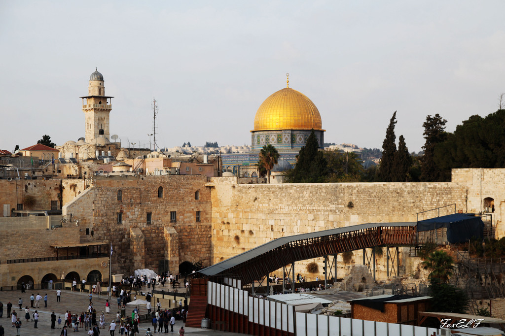 哭墙的背后是金顶清真寺和阿克萨清真寺,这里只能穆斯林进入,游客或“异”教徒在通道会被拦住。