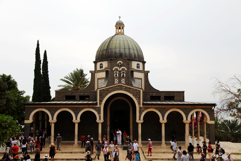 耶稣在传道的时候曾用五张饼、两条鱼喂饱了5000人,而且还有剩余。为了纪念这一神迹,教徒们在4世纪时兴建一座拜占庭式教堂,并在5世纪扩建,7世纪被破坏。20世纪被德国人买下土地后复建形成现在的样子(马赛克地砖为历史遗迹,现代修复仅为建筑部分)。