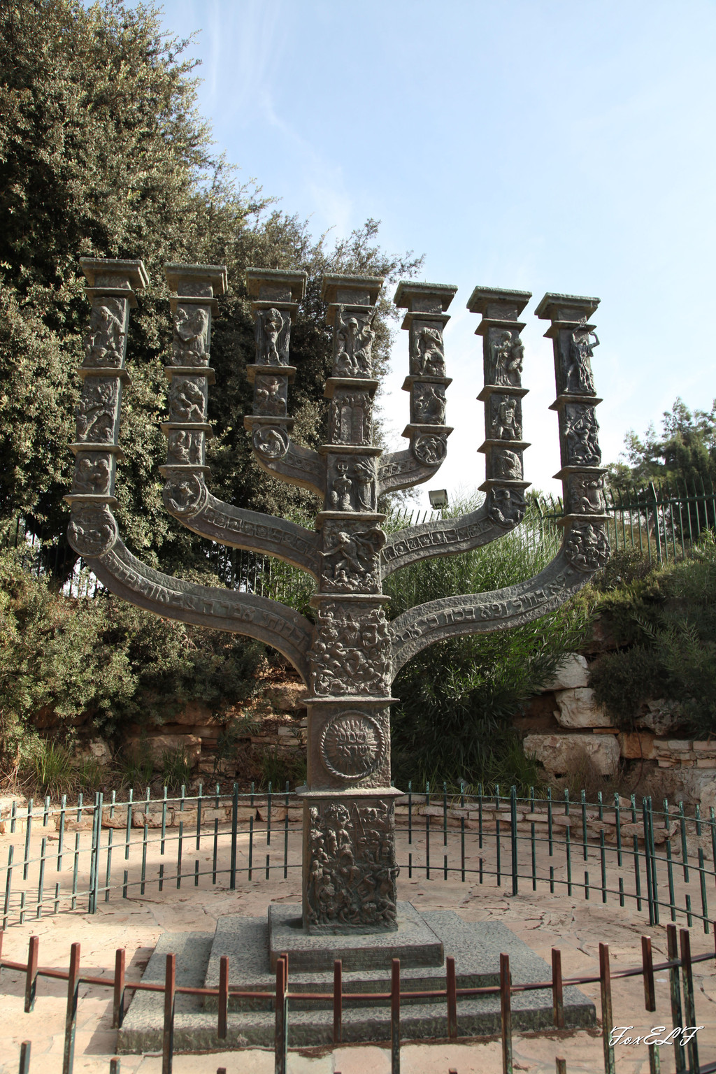 国会前的七星烛台是以色列建国后由一位到英国避难的犹太艺术家设计制造的,由英国政府捐赠烛,台上的图案都是圣经中的故事。七星烛台的历史早至2000年前,是耶路撒冷圣殿山的犹太第一圣殿中供奉的三种特别圣物之一,原来摆放于第一圣殿中,据说现在存于金顶清真寺中。