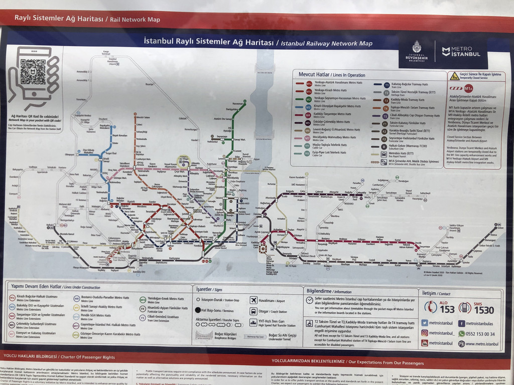 伊斯坦布尔的地铁网线与国内一线城市相比虽然不算多,但足够我们选择使用了,与机场大巴、快线、电车、公交接驳。而且相对有些老旧,不过结合城区的古代建筑与风景 ,还是很搭配。其中有一条线路是最长的,从城市东边到西边,穿越了海峡。另外,由于地形的原因,有时在地下,有时在地面,别有一番不一样的体验。