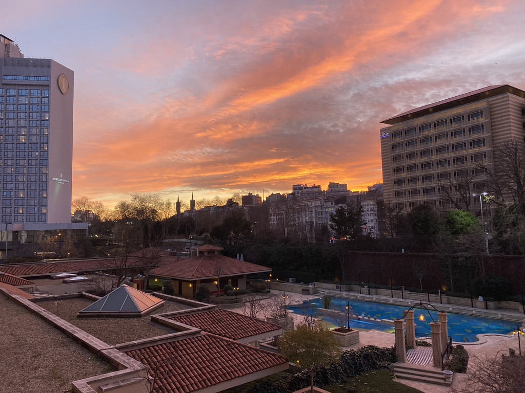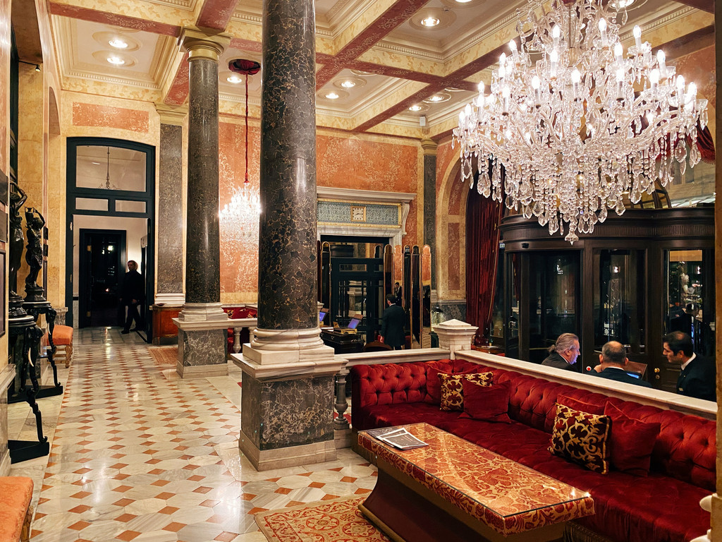 到达伊斯坦布尔是当地时间的凌晨五点半,提前在网上预约了接机,从伊斯坦布尔新机场接机到第一晚的酒店佩拉宫酒店是一口价350元,路上大概是一小时左右,接机的都是统一的奔驰商务车,很舒服。为了更好地休息,我们到达当天是预订了酒店房间的,所以我们早上九点在酒店就可以直接入住,而不用等到中午才入住。我们第一晚的酒店是位于贝伊奥卢的佩拉宫酒店,离大名鼎鼎的塔克西姆广场步行仅需十来分钟,离独立大街(伊斯蒂克拉尔大街)也只有一街之隔。佩拉宫酒店是十九世纪末伊斯坦布尔第一家也是唯一一家豪华酒店,也是当时土耳其唯一有电梯的酒店(欧洲第二部),古老的电梯依然保持运营,不过最声名远扬的应该还是东方快车谋杀案,阿加莎.克里斯蒂的著名推理小说《东方快车谋杀案》就是在此酒店411房间完成。我们入住的是葛丽泰·嘉宝角落客房,酒店价格不算贵,我们去的时候基础房大概800左右,而我们这间葛丽泰·嘉宝角落客房每晚是1000元左右,面积大概有42平米。特地定的转角房,可以看到两个街区的风景,而且还有小阳台的哦,真的是超棒这个酒店。