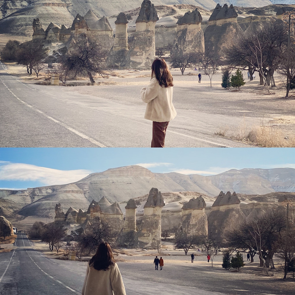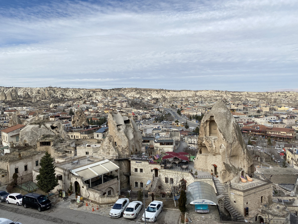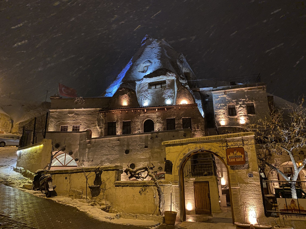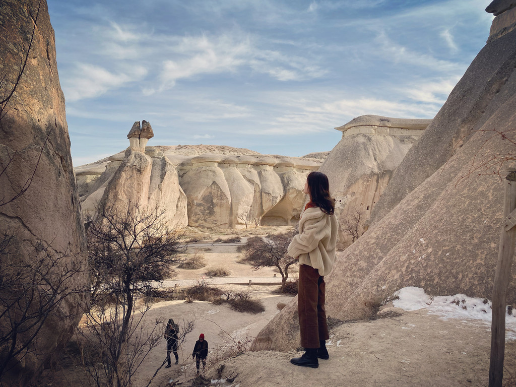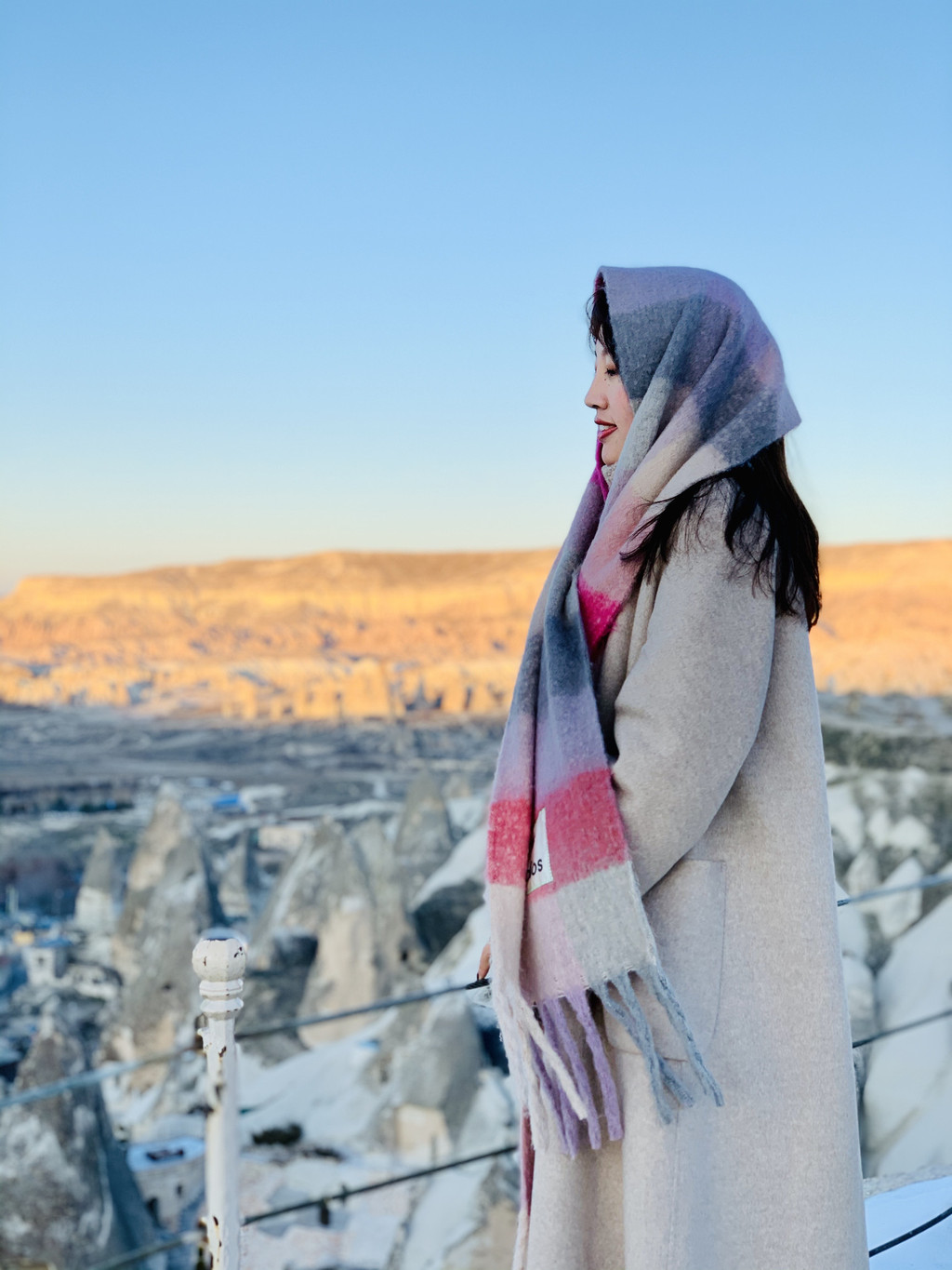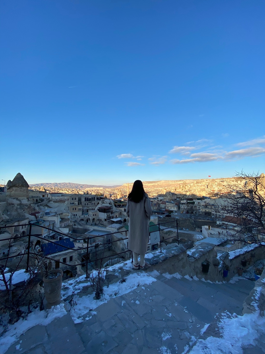 格雷梅小镇位于卡帕多奇亚,这里也就是土耳其最负盛名的旅游地了,这里云集了造型各异的仙人烟囱岩,被景色宜人的玫瑰谷、鸽子谷所环抱。对土耳其本身最大的期待应该就是飞屋环游记那种“最接近上帝视角”的热气球,可惜我们在卡帕多奇亚的那几天要么是下雪要么是刮风,到最后也没有体验到热气球,但也因此解锁了很多未曾好好感受的美丽风景。