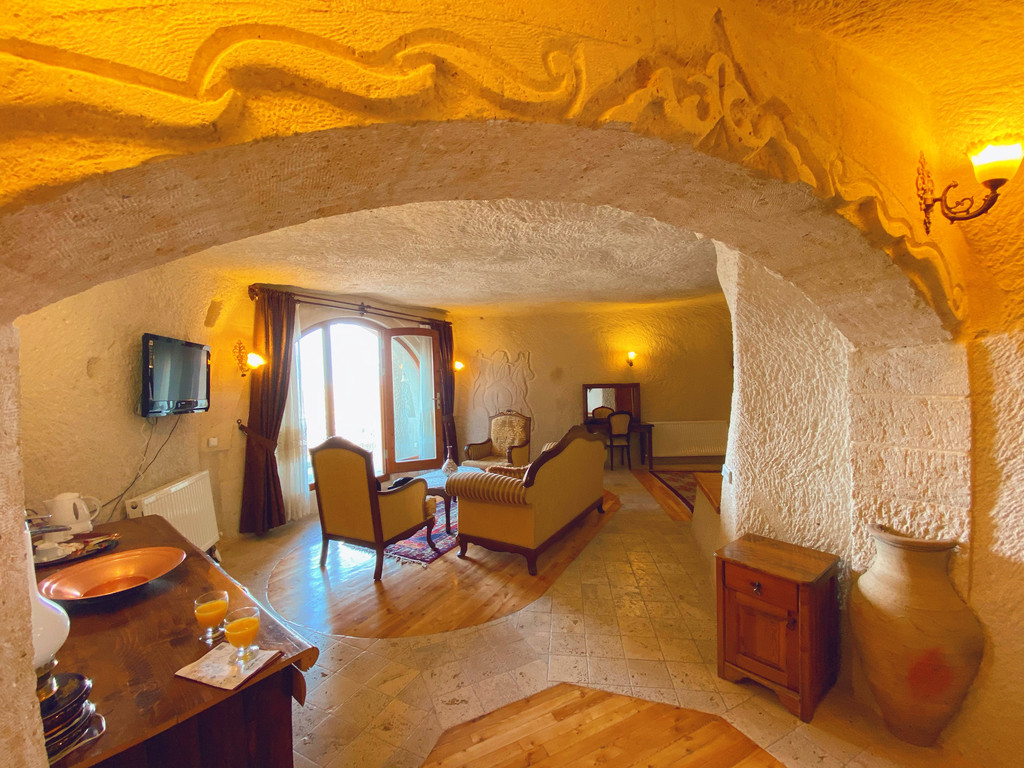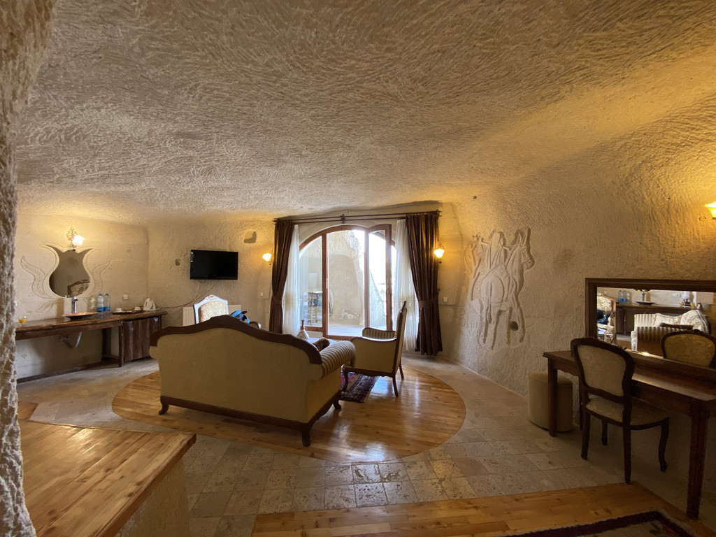 而其中最有特色的便是修建在其中的洞穴酒店了。我们此行居住了两家洞穴酒店,分别为旅行者洞穴酒店(小型套房666元/晚)