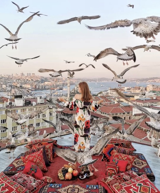 心心念念牵挂着的露台拍照,有地毯和海鸥在头顶的那种,如这个网图,让我真的是魂牵梦萦,就是为了他而去的,也是在ins上引发各国友人网红热捧的必去打卡景点。