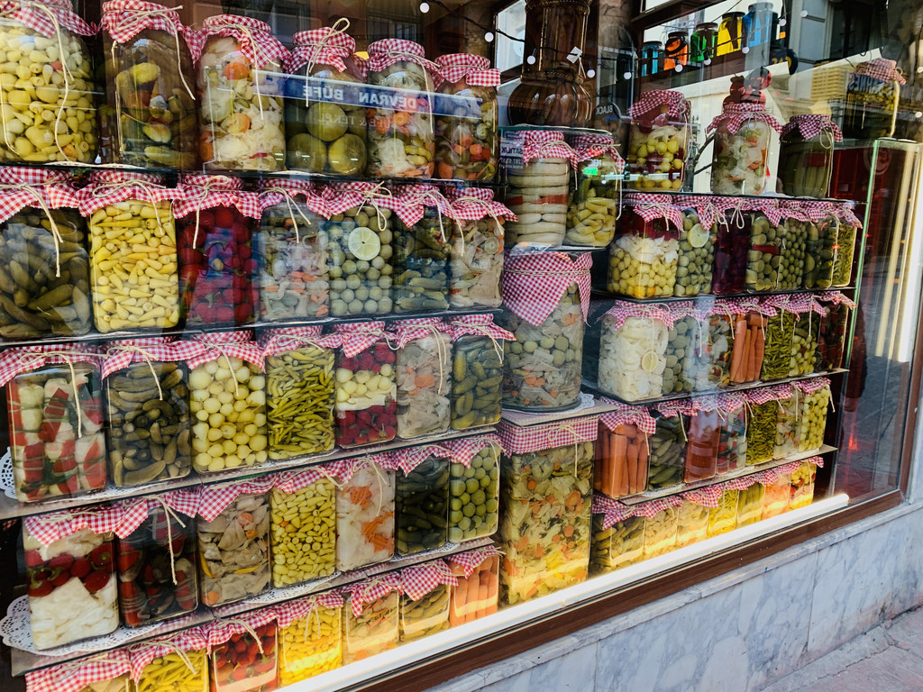这里插播一下,土耳其的泡菜(他们叫什么我不记得了),每家饭店吃饭都会配,一定要吃!最后我们还找了专卖店买了一瓶。品种超多