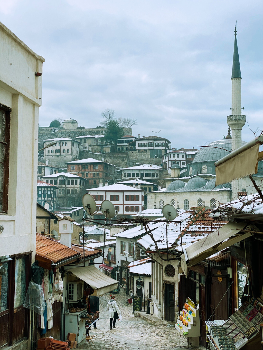 这座仿佛停留在17、18世纪的小城在1994年被评为“世界文化遗产”。世界各地的游人来了又走,她依然保有那份触手可及的美感。走进番红花城就像在翻阅一部奥斯曼帝国的历史书籍一般,虽历经几百年的风风雨雨,却依然保留着浓郁的当地风格和传统的房屋建筑。我们去的时候正值冬季,雪花为历史建筑们附上了一层白纱。
