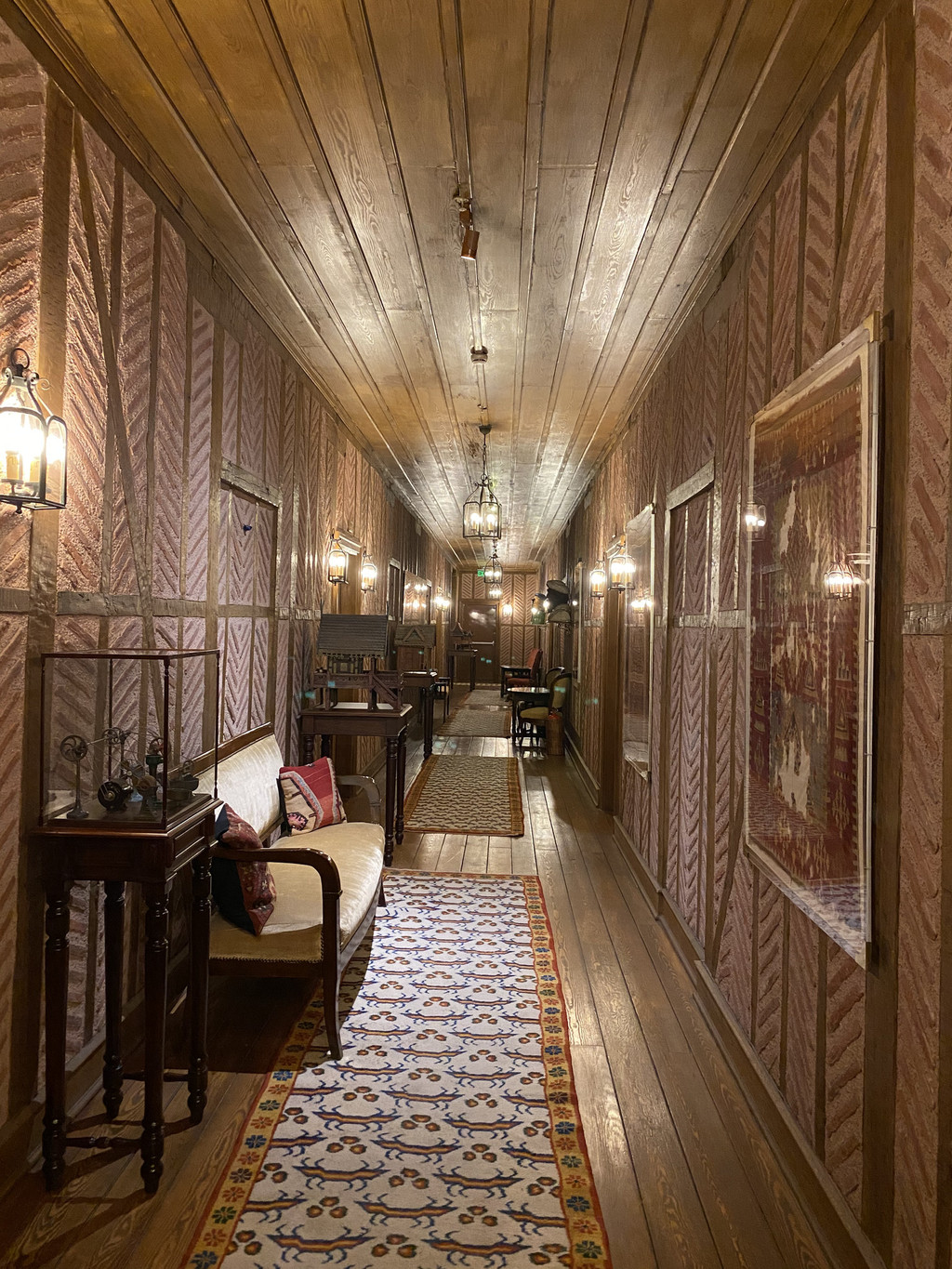 我们在安卡拉住的酒店为迪万卡拉汉酒店,约800元/晚,一个始建于16世纪的酒店处处有着中世纪气息,由一栋奥斯曼历史建筑改建,里面的建筑以及酒店的设计风格真的让人惊叹,很多的像文物一样的标本,酒店里面的餐厅也很棒,是我在土耳其吃过的最让我喜欢的一顿西餐,对面就是安卡拉城堡,上去可以俯瞰全景,很棒噢。