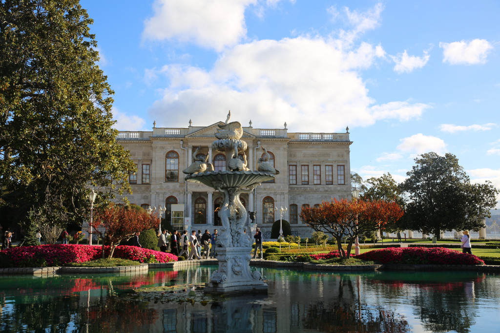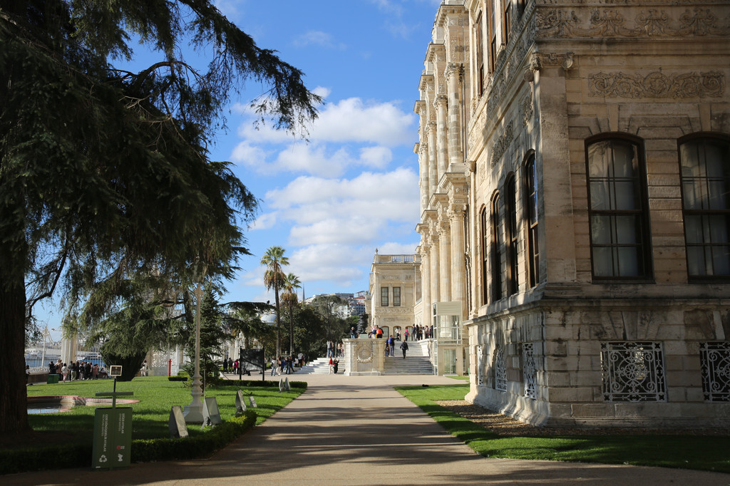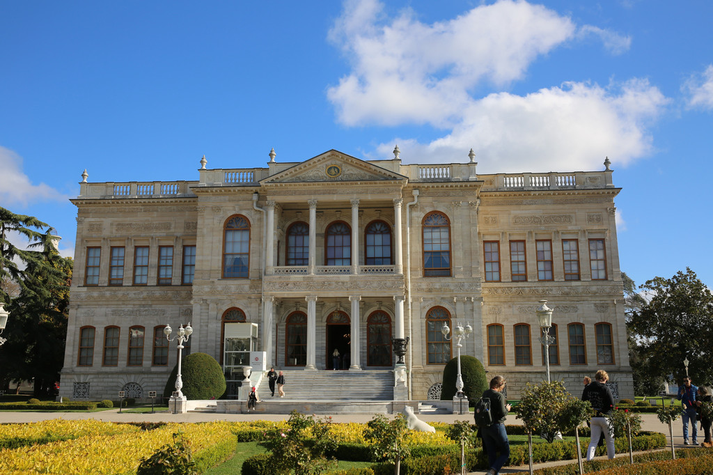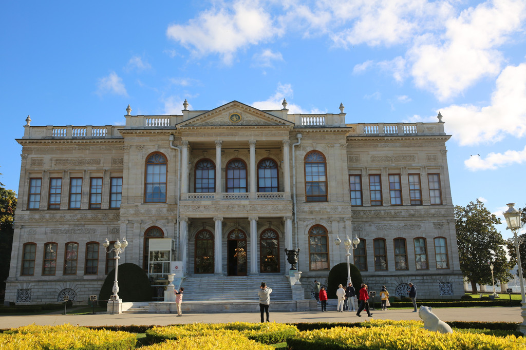 多尔玛巴赫切宫位于伊斯坦布尔的新城区,又被俗称为奥斯曼帝国新王宫。坐落在海峡的欧洲沿岸上,宫殿建筑顺着博斯普鲁斯海峡绵延600米。宫殿建筑气势恢弘,内部装饰奢华,园林、喷泉、石狮和雕刻都非常大气,无不透露着曾经盛极一时的奥斯曼帝国的辉煌与富庶。