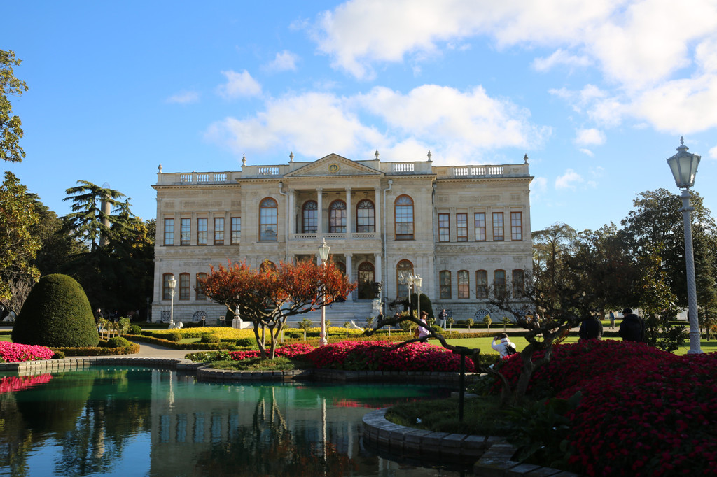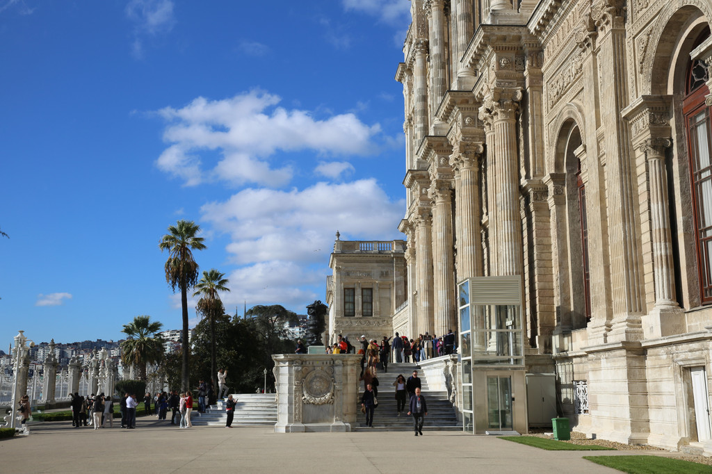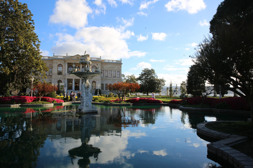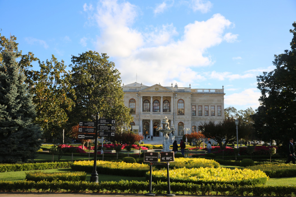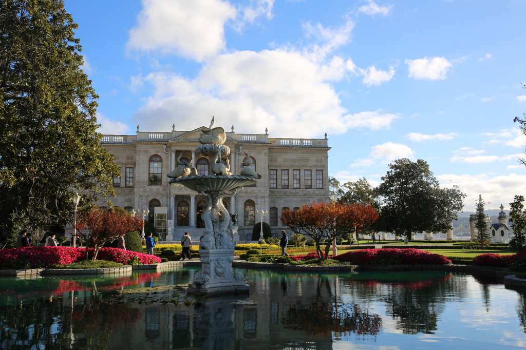 多尔玛巴赫切宫位于伊斯坦布尔的新城区,又被俗称为奥斯曼帝国新王宫。坐落在海峡的欧洲沿岸上,宫殿建筑顺着博斯普鲁斯海峡绵延600米。宫殿建筑气势恢弘,内部装饰奢华,园林、喷泉、石狮和雕刻都非常大气,无不透露着曾经盛极一时的奥斯曼帝国的辉煌与富庶。