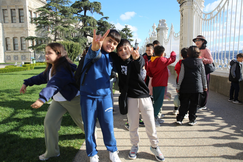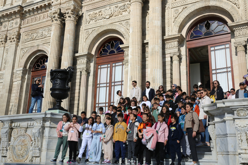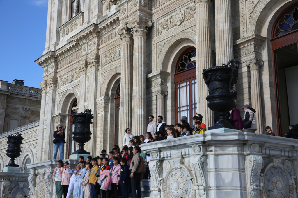 在帝国门台级上土耳其小学生们拍集体照。