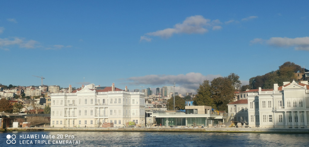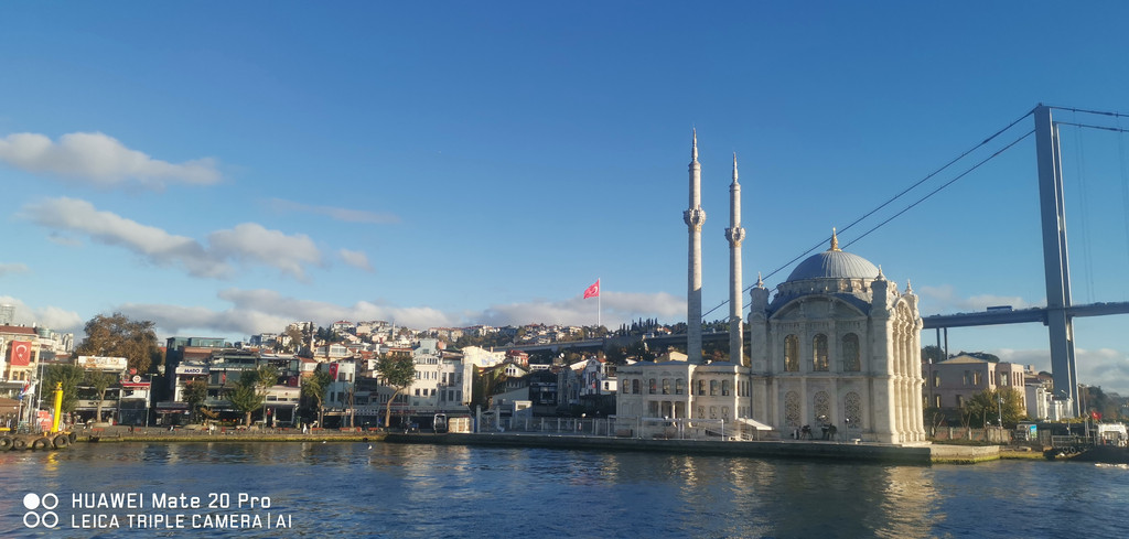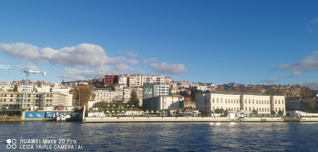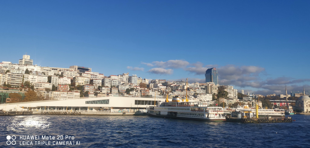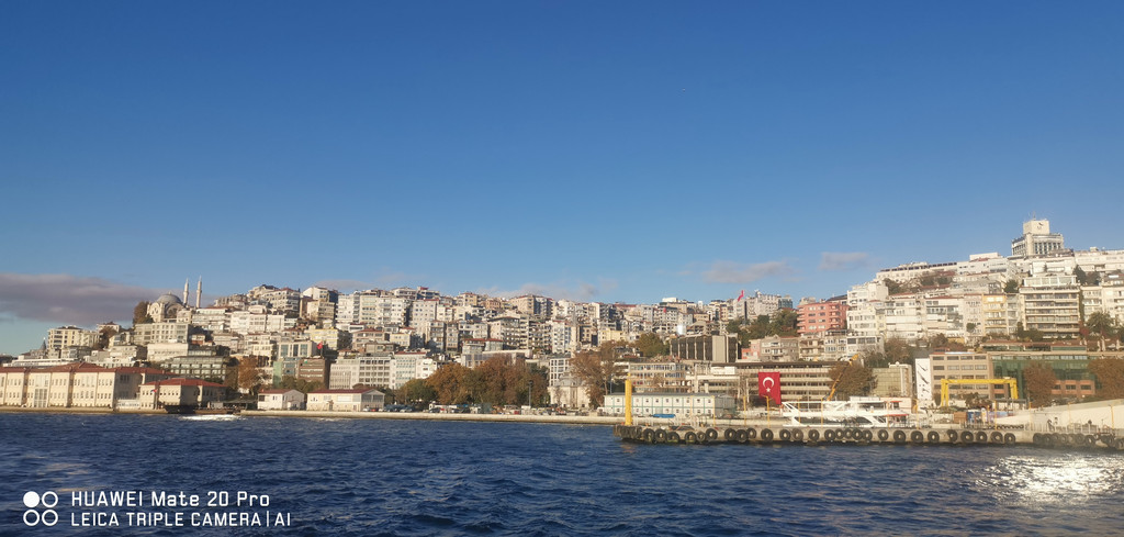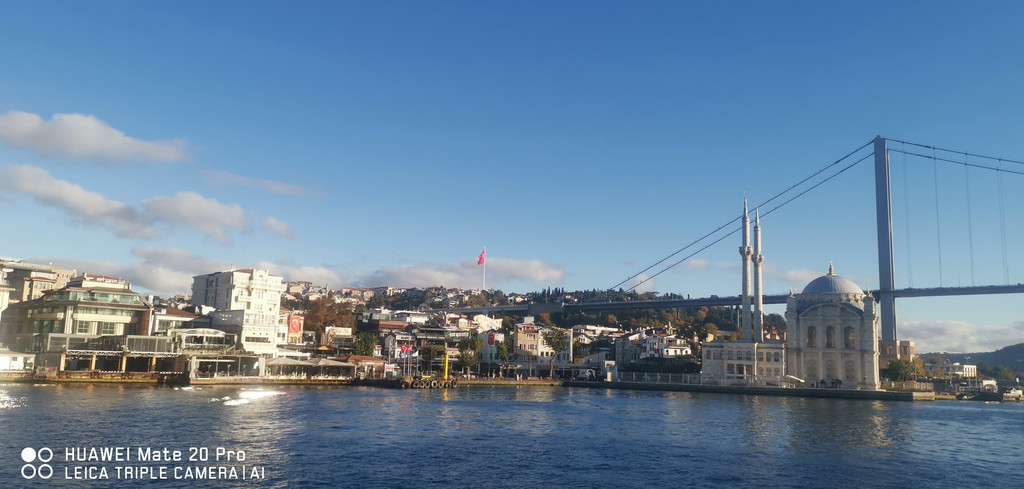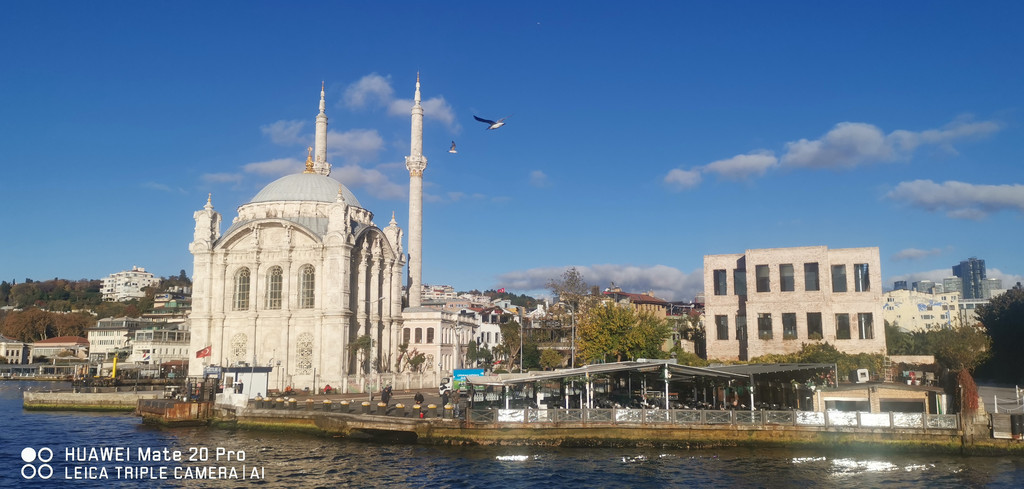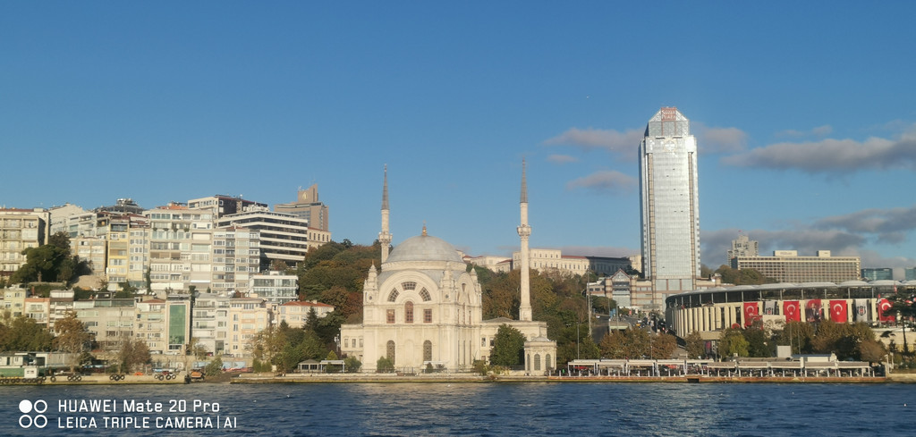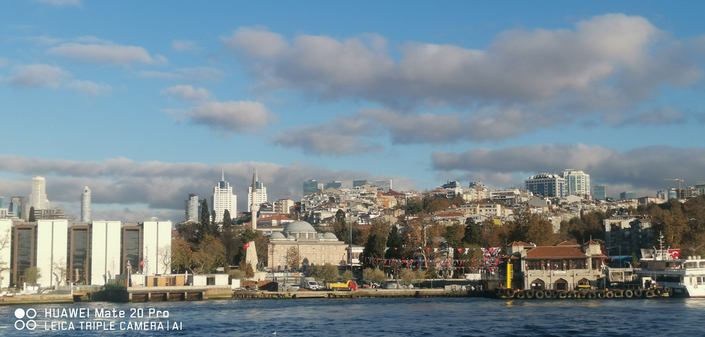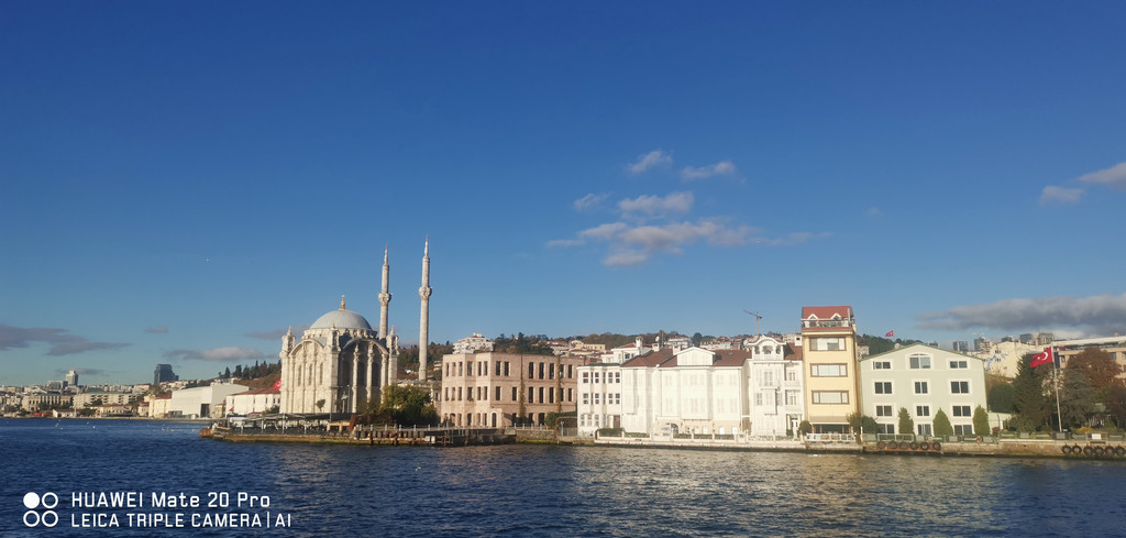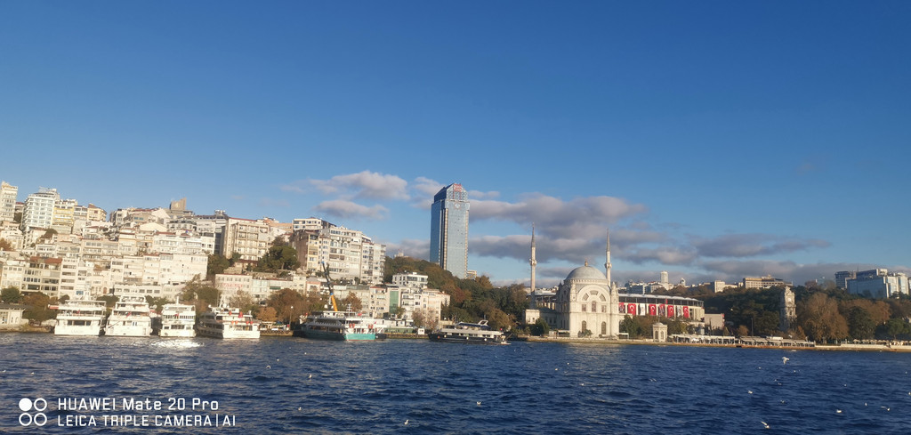 游船继续,一路上看到海峡两侧有很多古迹,也有不少现代化的高楼建筑,最不缺的就是各个年代的清真寺。