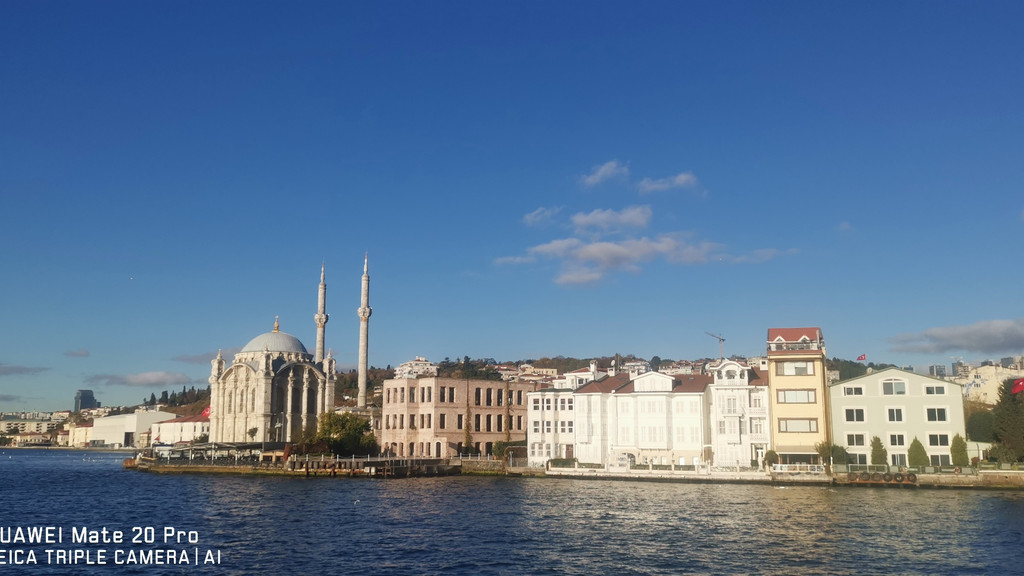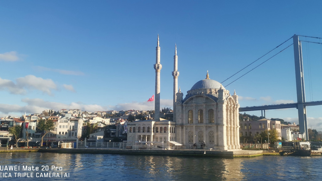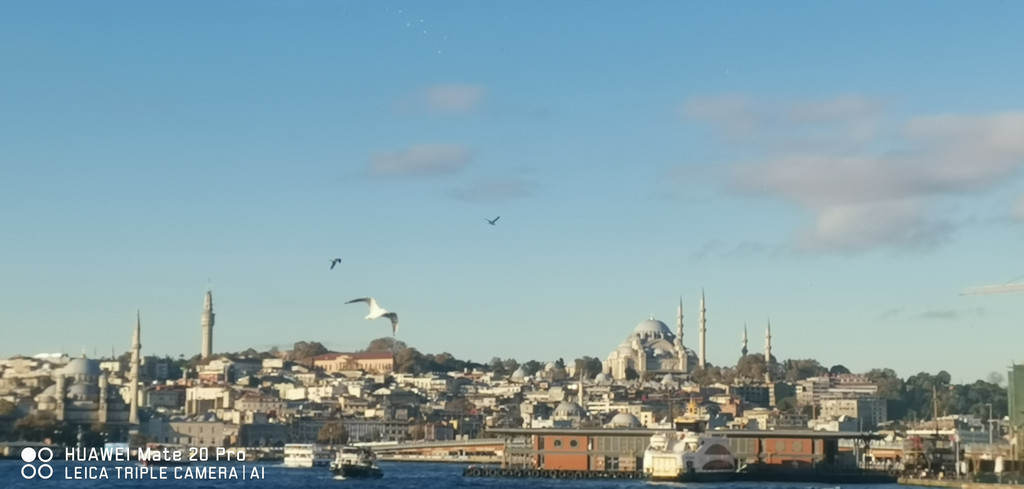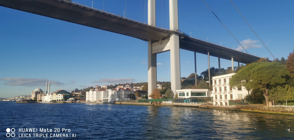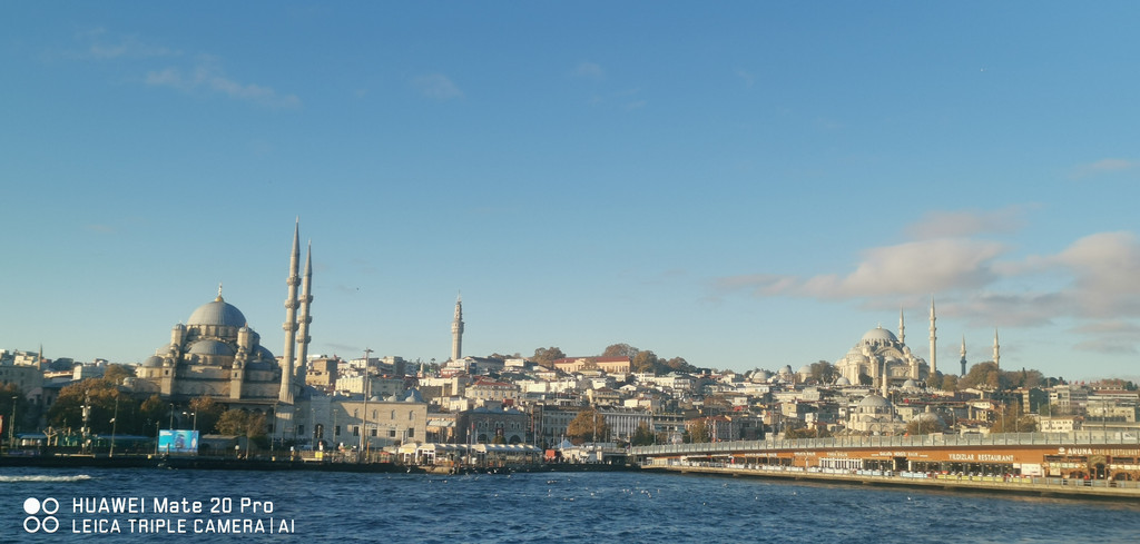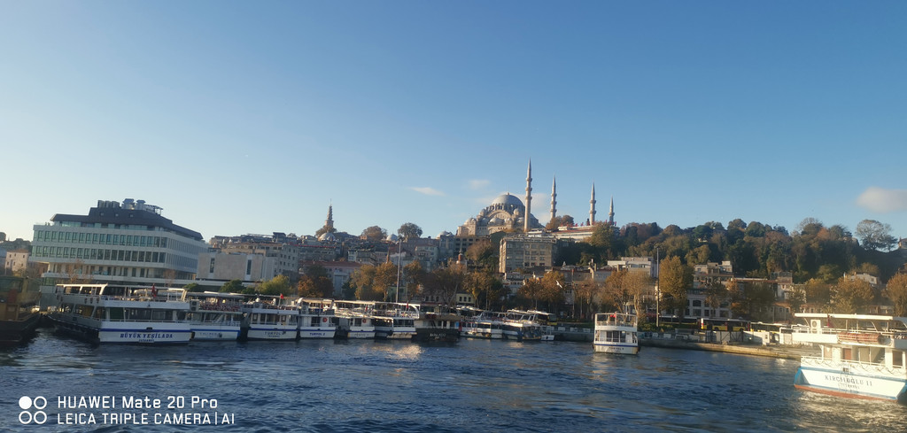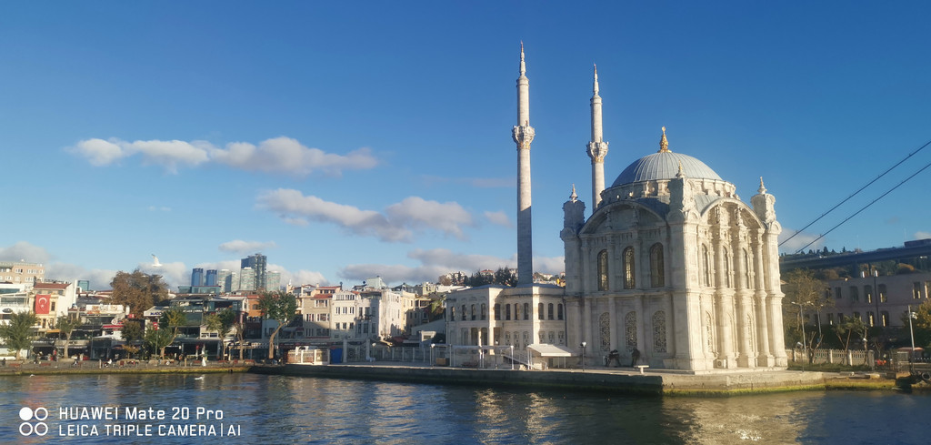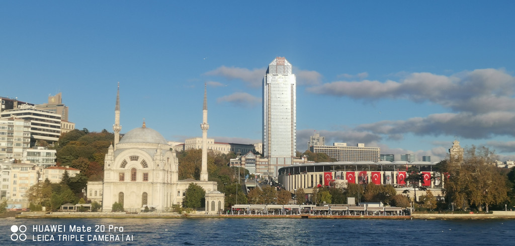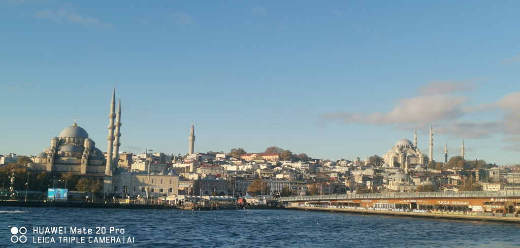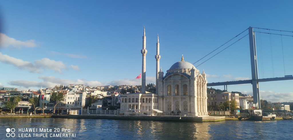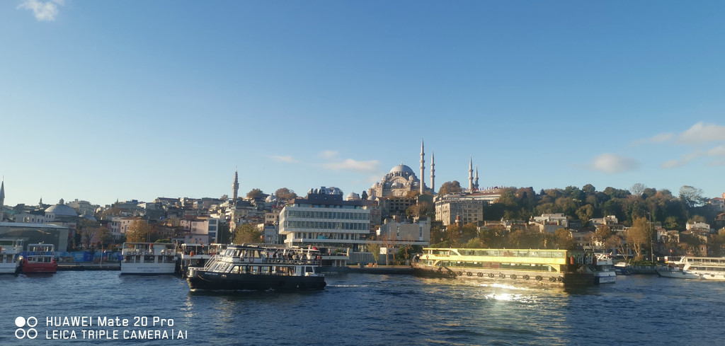 游船继续,一路上看到海峡两侧有很多古迹,也有不少现代化的高楼建筑,最不缺的就是各个年代的清真寺。