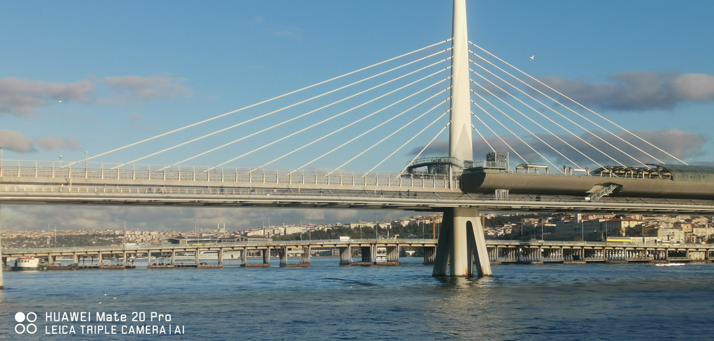 造,后来由石头再转变为混凝土,现存的加拉塔大桥是历史上的第五条,于1994年建成。大桥全长490米,中间可以打开让船只通过。此桥历经160多年,由木桥转身为石头桥,继而转身为今天的混凝土桥。桥分两层,上层是公路桥,桥边密密麻麻的钓鱼的人群;下层则是土耳其的特色餐饮,烤鱼的香味,在空气中散发着诱惑。