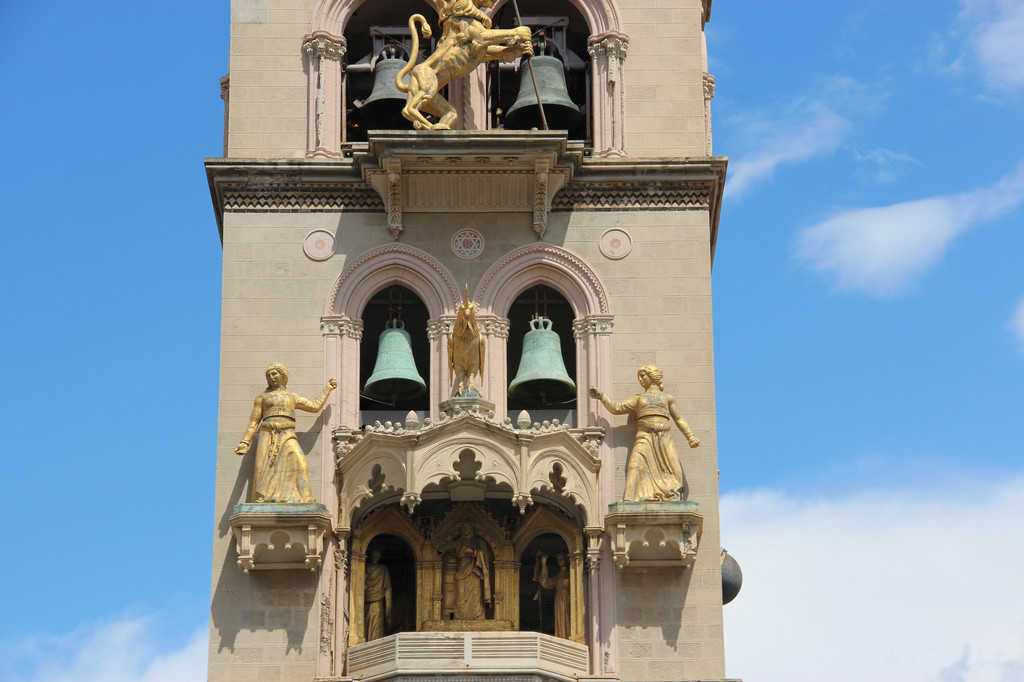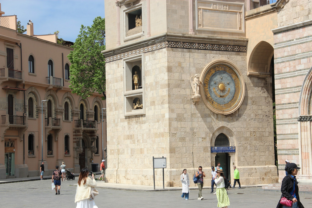 在主教堂的左侧,矗立着一座高耸入云的60米高的钟楼,是墨西拿的城市地标之一,藏有世界上现存最大的天文钟,有着世界上钟楼里最复杂的机械结构。每天正午大钟会敲响,钟声空灵圣洁,引来了许多本地市民和游客驻足观赏。