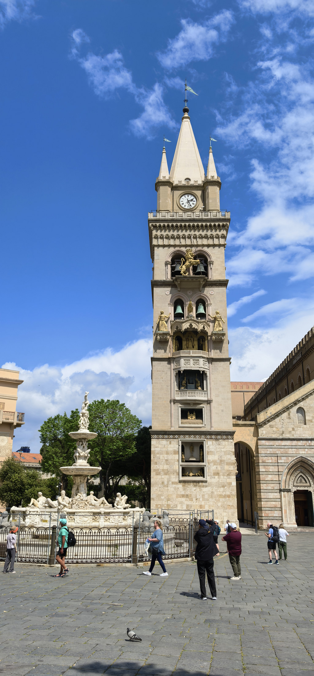 钟楼下面是建于1553年的喷泉,以纪念此城市的创始人ORION,此喷泉由米开朗基罗的学生设计的。同时也为纪念墨西拿是第一个在西西里享有活水源的城市。