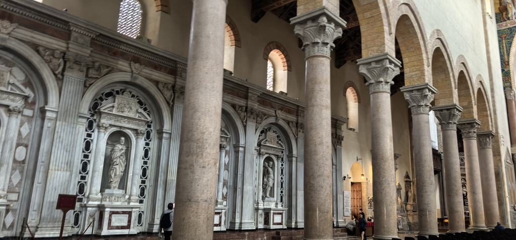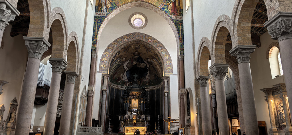 卡塔拉尼广场上的萨蒂西玛·安努兹亚塔教堂,它展示了12世纪诺曼底建筑的折衷主义和华丽的装饰。虽屡受地震和二战等重创,但重建的教堂忠实于其原本的基督教堂式样。