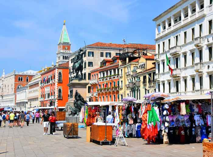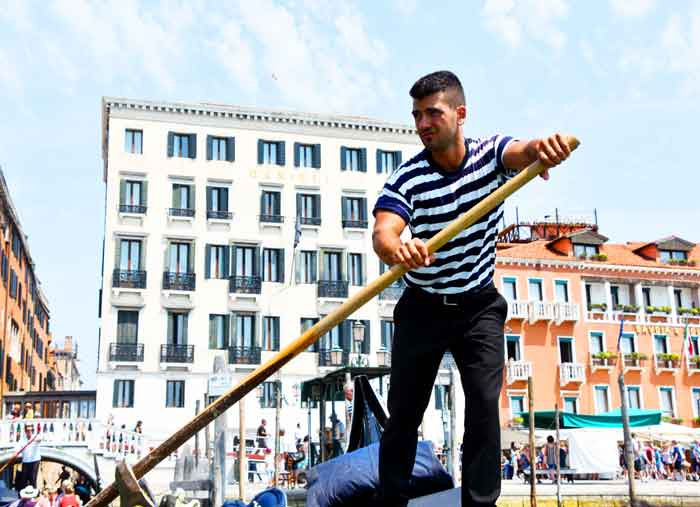 为团队专门担任威尼斯导游的一位叫朱明旭小伙子开始领着大家沿着岸畔,穿过一座座的石桥漫步而行。边行边说起威尼斯的相关情况:威尼斯(Venice)是意大利东北部著名的旅游城市。这里曾经是威尼斯共和国的中心,被称作“亚得里亚海明珠”,而且也是13世纪至17世纪末一个非常重要的商业艺术重镇,堪称世界最浪漫的城市之一。威尼斯市区涵盖沿岸的泻湖的由118个岛屿和邻近一个半岛,更有117条水道纵横交叉。在不大的陆地城中错综复杂的街巷横七竖八足有上百条。虽然目前这里还不是旅游旺季,但记者眼里看到的水城游客已人满为患。
