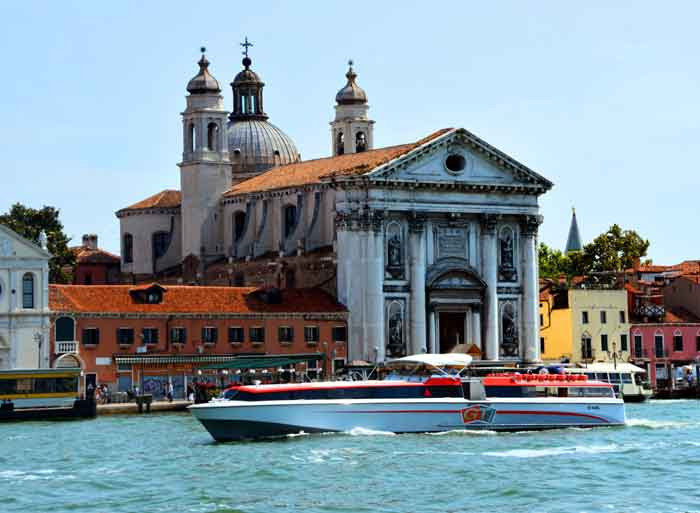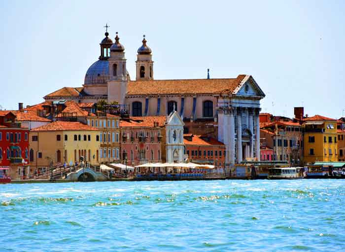 2017年6月21日意大利时间10:30,欧洲行团队在结束了罗马的行程后,从昨晚下榻的意大利博洛尼亚UN AM YA酒店出发,驱车两个多小时抵达世界著名的意大利水城威尼斯。从码头首先乘摆渡游船前往威尼斯,船游海上可以看到威尼斯岸畔的那些很有特色的建筑群,经过半个多小时的水路行程登岸来到人头攒动的威尼斯。