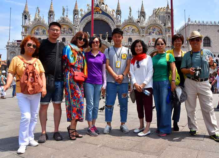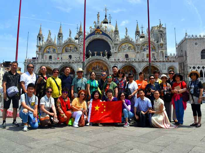 自古以来,圣马可广场一直是威尼斯的政治、宗教和传统节日的公共活动中心。1797年拿破仑进占威尼斯后,垂涎这里的景色,赞叹圣马可广场是“世界上最美的广场”,因此曾下令把广场旁边的总督府改为行宫,至今人们还把它叫做拿破仑宫。圣马可广场是每年嘉年华最主要的场景,但是在平常也热闹的像一座舞台,永远不会冷场。团友们在此也留下了出行后的第三张合影。