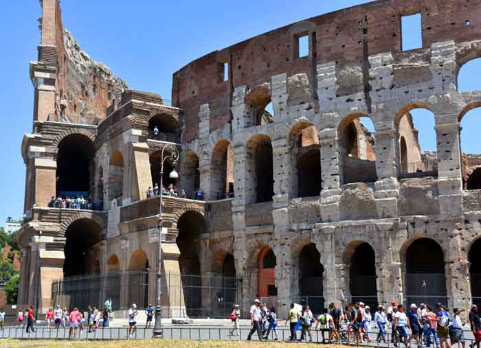罗马还被喻为全球最大的“露天历史博物馆”。世界八大名胜之一的古罗马露天竞技场,也称斗兽场,建于公元1世纪,是古罗马帝国的象征。宽阔的帝国大道两旁建有元老院、神殿、贞女祠和一些有名的庙宇,如万神庙等。来意大利罗马,是一定要瞻仰一下斗兽场这座建筑的,于是团队结束了梵蒂冈城国的参观后随即来到这里。
