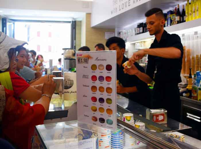 在许愿池旁边不远处,如今有两座冰激凌店,看过《罗马假日》影片的人们也许不会忘记,有一段记录当年安妮公主在这里的小摊前买冰激凌吃的场景,看到许愿池周边的景象,立刻让记者回忆起来。于是包括记者在内的很多团友,在如今的冰激凌店里,纷纷购买一种榛子味道的冰激凌。一个冰激凌两个球,2.5欧元,榛子味儿的往往是人们必选之一。在小店前买个冰激凌,在此地边吃边回味安妮公主当年在此的一番经历真是太浪漫了......