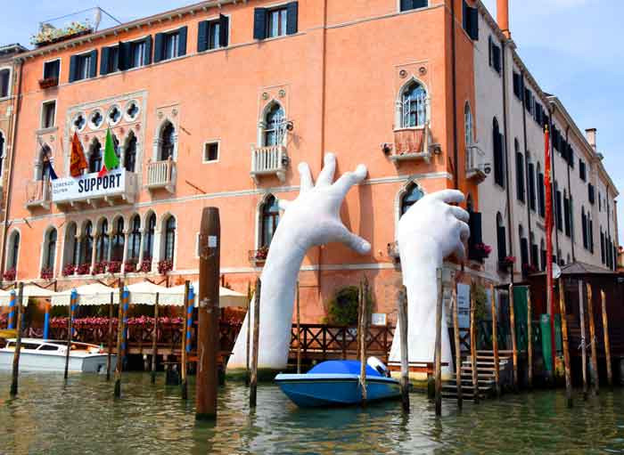 威尼斯肥沃的冲积土质,就地而取材的石块,加上用邻近内陆的木头做的小船往来其间;在淤泥中,在水上先祖们建起了威尼斯。这个不到8平方公里的城市,却被一百多条蛛网般密布的运河割成一百多座小岛,岛与岛之间只凭各式桥梁错落连接,初来乍到很快便会迷失在这座“水城”中,找不到路。好在有大运河呈S形贯穿整个城市。沿着这条号称“威尼斯最长的街道”,可以饱览威尼斯的精华而不用担心迷路。沿岸的近200栋宫殿、豪宅和七座教堂,多半建于14至16世纪,有拜占庭风格、哥特风格、巴洛克风格、威尼斯式等等,所有的建筑地基都淹没在水中,看起来就像水中升起的一座艺术长廊。平日里大运河真的像一条熙熙攘攘的大街一样,各式船只往来穿梭其上,最别致的当然还是贡多拉。