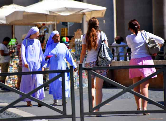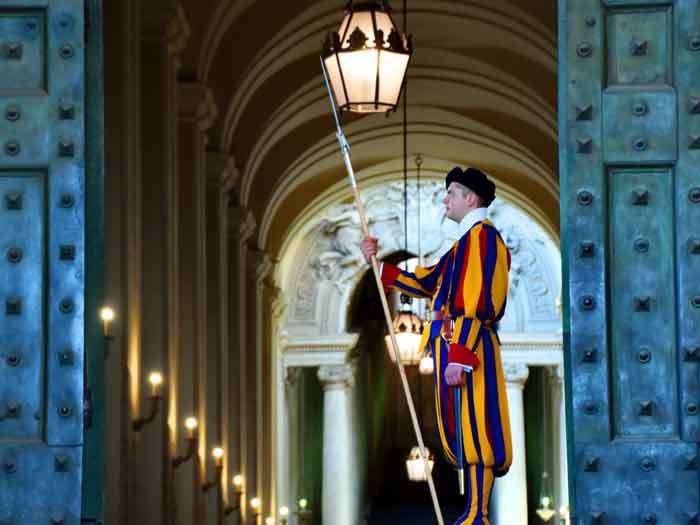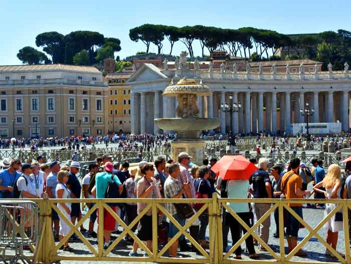 来到位于意大利罗马市内的梵蒂冈城国,只见来自世界各地到此参观朝圣的游客们排着长长的队列等候在这里。而团队因提前办理了贵宾通道,则极为幸运地绕过长长的队列,进入专属通道很快进入了梵蒂冈城国内。为我们担任讲解员的是一位名叫秦海伦的漂亮姑娘。她思维敏捷,口齿清晰,声音很有魅力,对梵蒂冈的情况烂熟于心,于是团友们跟着她,观赏着眼前的景物,听着耳机中她的动听的讲解,开启了对梵蒂冈的参观行程。