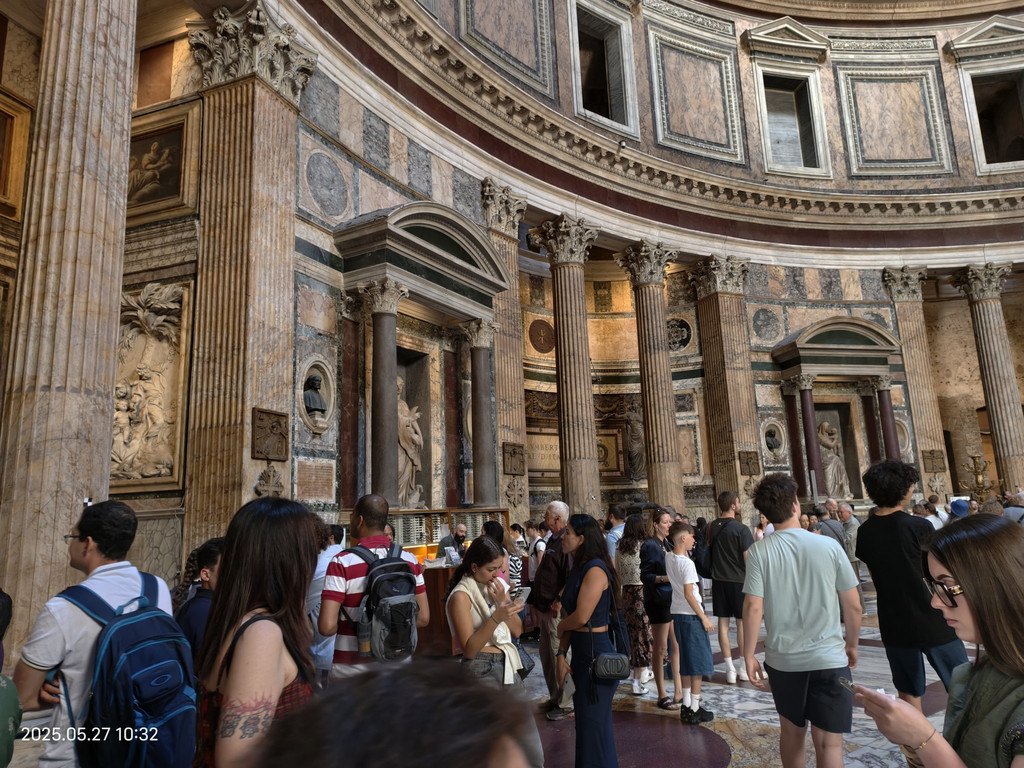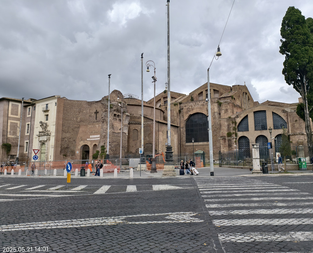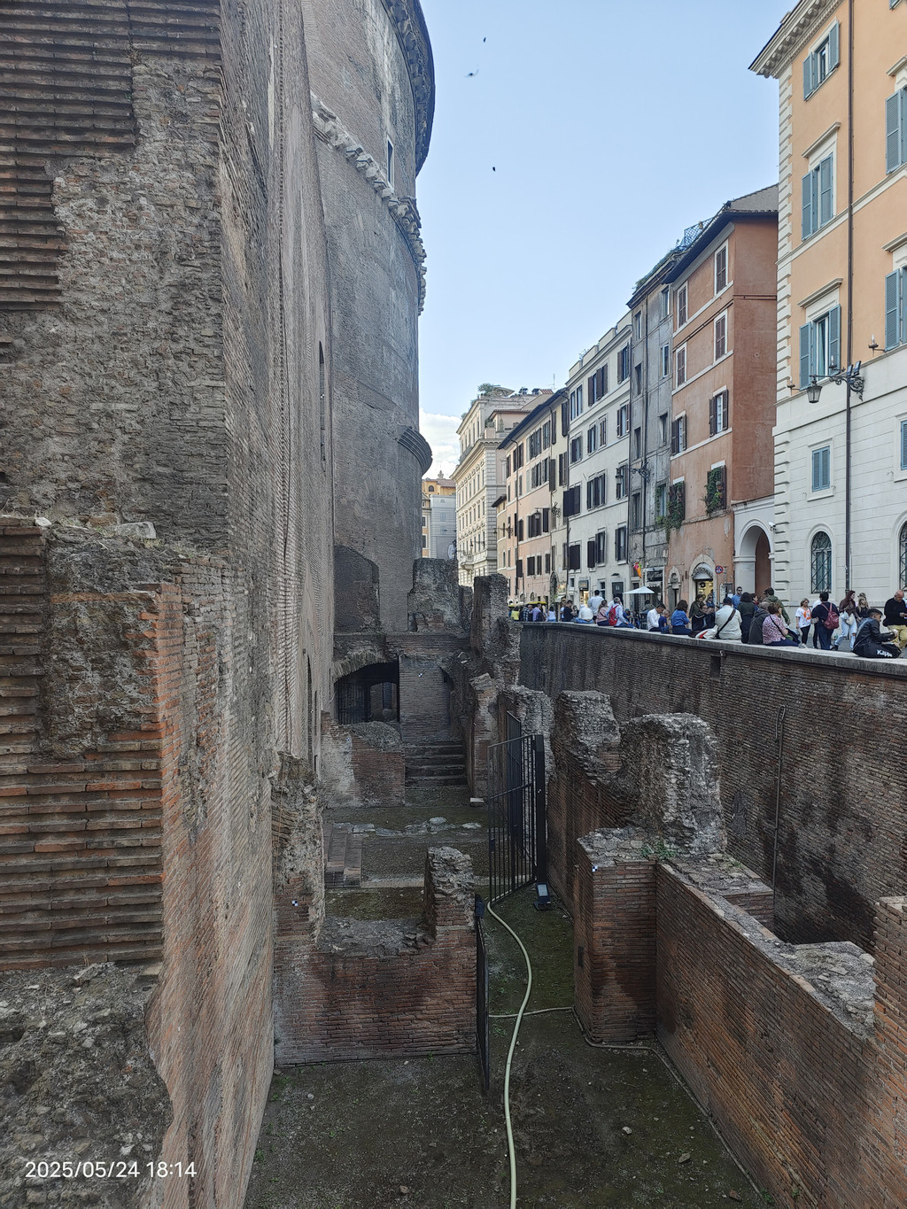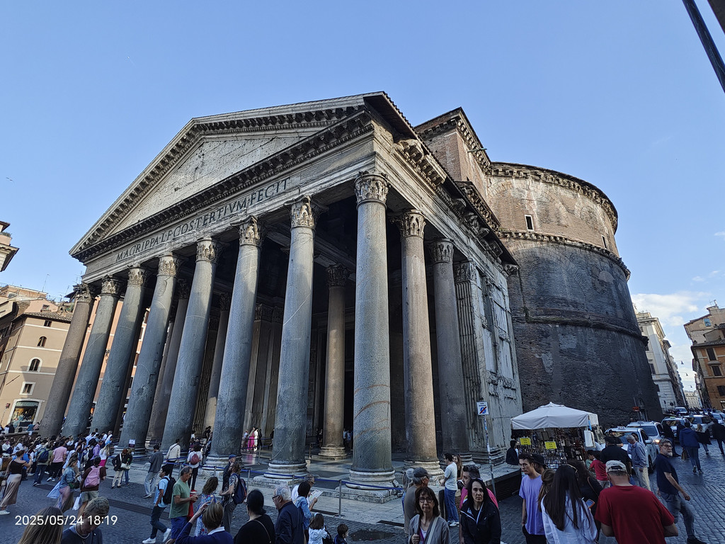 万神殿是来罗马不容错过的景点,24日来晚了没买到票,今天27号一早赶来排队买票。趁排队等候时间,绕万神殿转一圈,看看它的外貌。