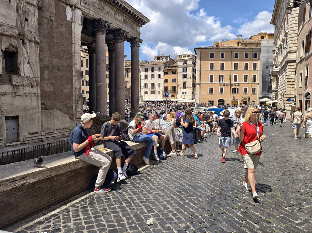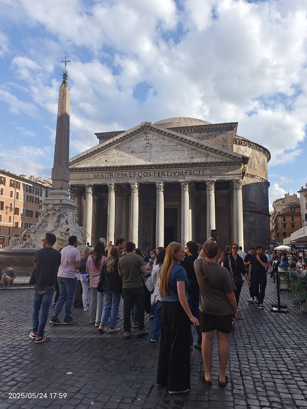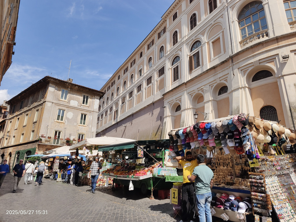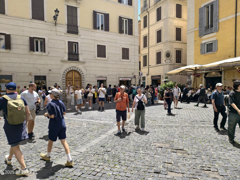 万神殿是来罗马不容错过的景点,24日来晚了没买到票,今天27号一早赶来排队买票。趁排队等候时间,绕万神殿转一圈,看看它的外貌。