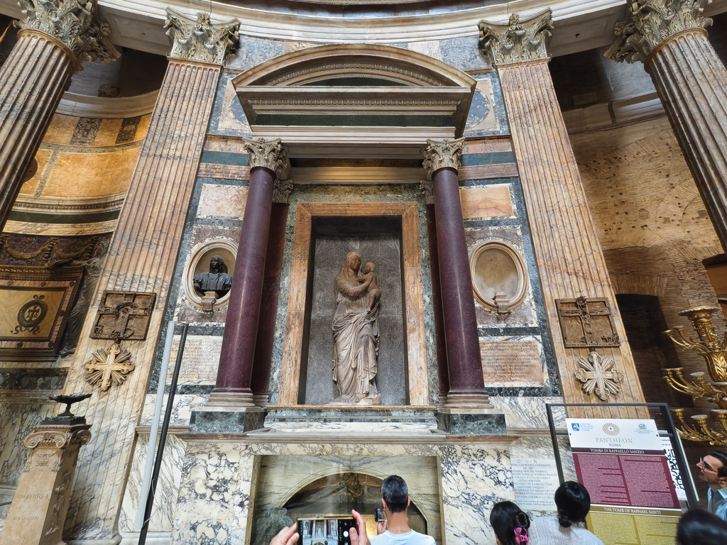 ,万神殿变成了一座基督教教堂,被命名为《圣母与诸殉道者教堂》。正是因为成为了基督教堂,万神殿才逃过了中世纪对各种古罗马建筑的摧毁。