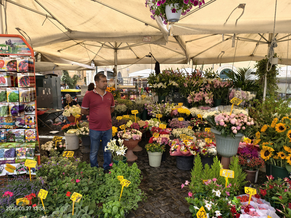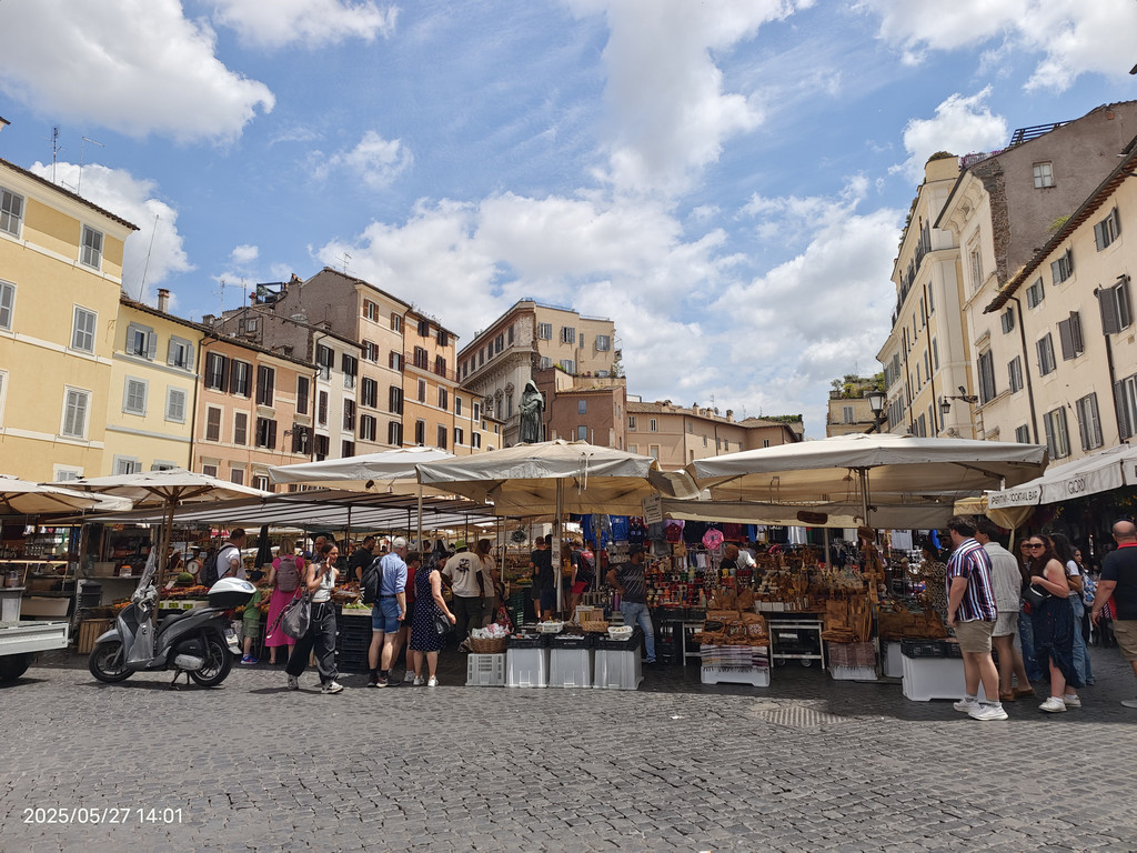 鲜花广场是一个生活气息浓厚的广场,每天早上(除周日外)这里是一个露天集市,有贩卖蔬菜、水果、小吃、香料、鲜花等摊位,收摊时间大概是一两点。傍晚起广场周边的餐厅会设置露天座位供食客们用餐。鲜花广场曾经是罗马公开行刑的地方,1600年哲学家布鲁诺因提出日心说在此被处死,现在广场上伫立的雕像便是布鲁诺。