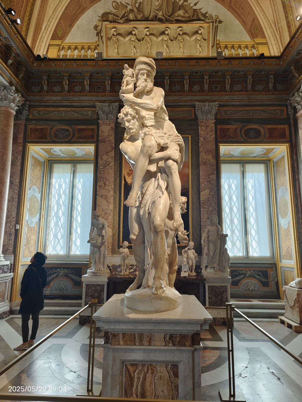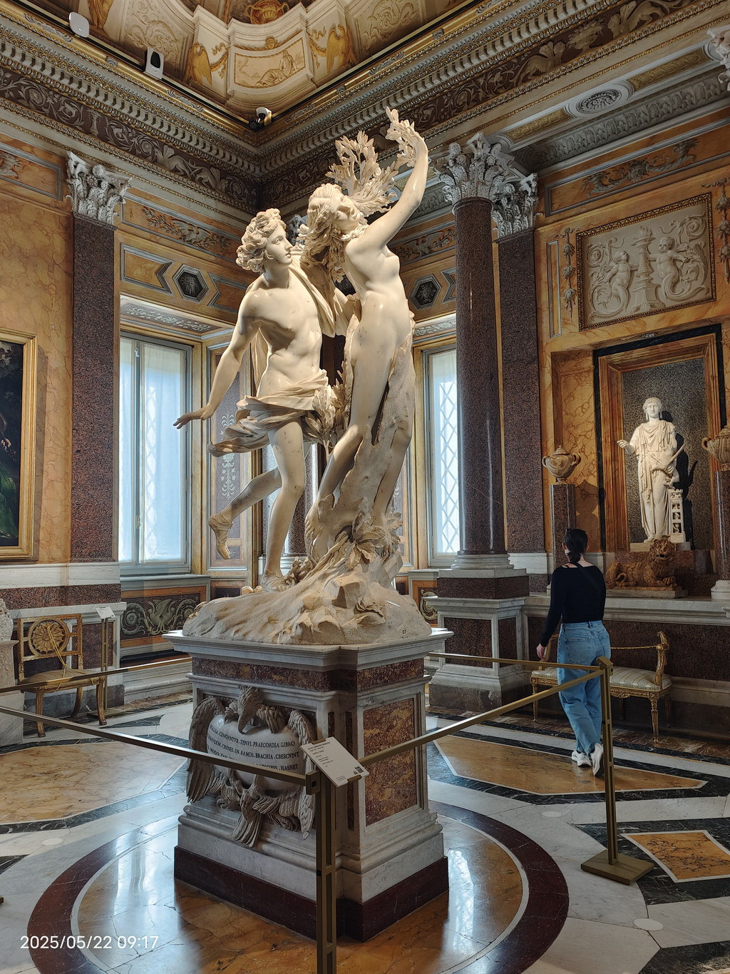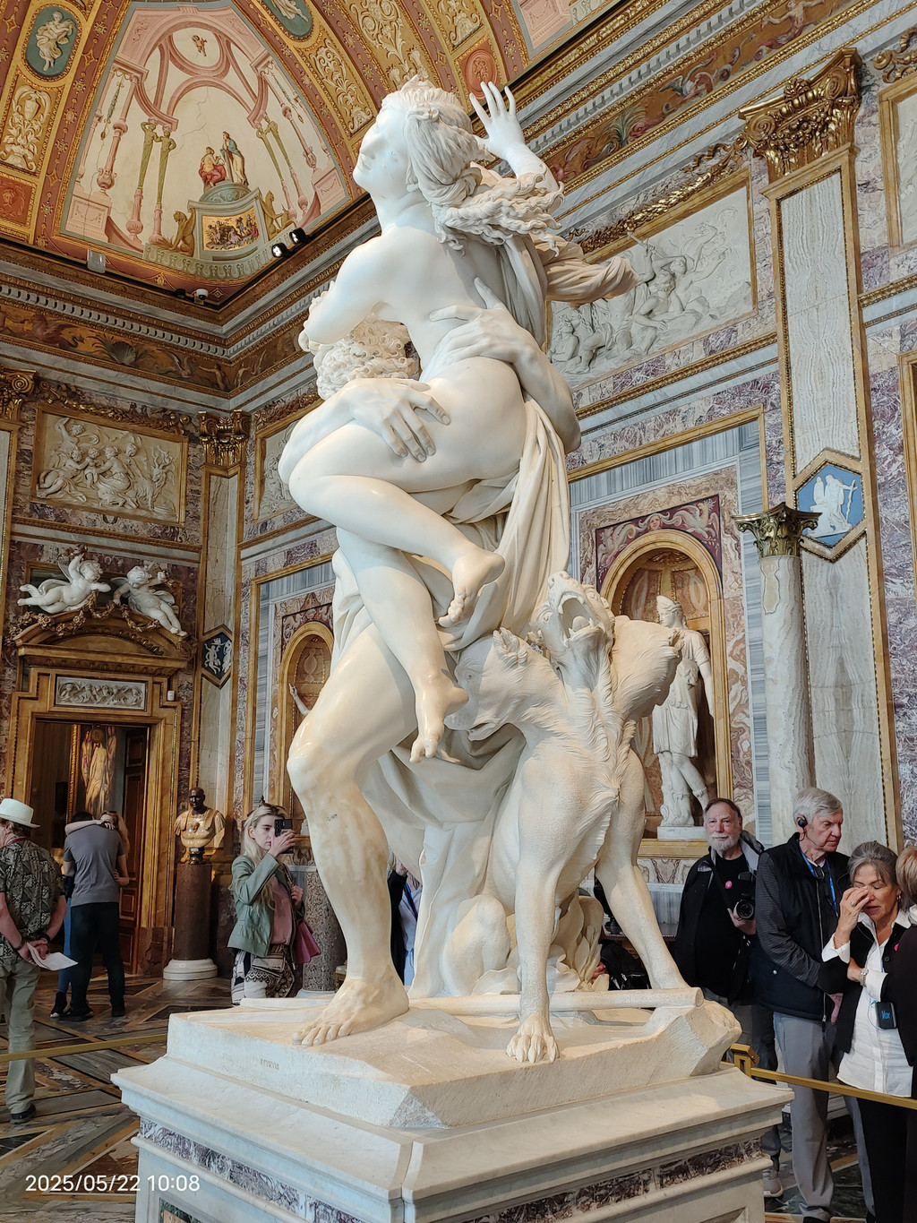 开馆进去,直接先到镇馆之宝济安·贝尼尼的《被掳掠的珀耳塞福涅》厅。厅里就我们俩,后面的游客还没赶到。《被掳掠的珀耳塞福涅》作于1621-1622年。