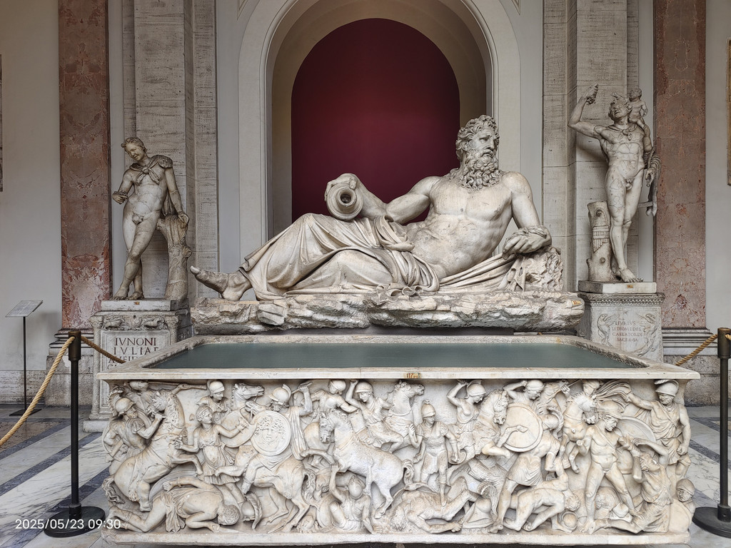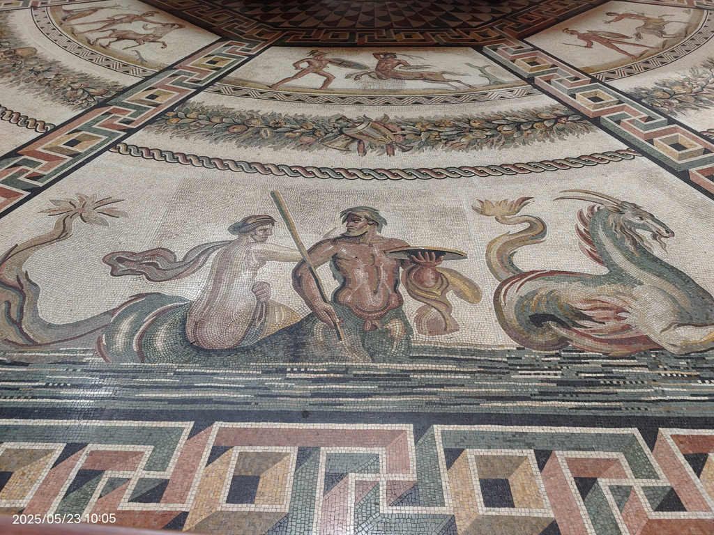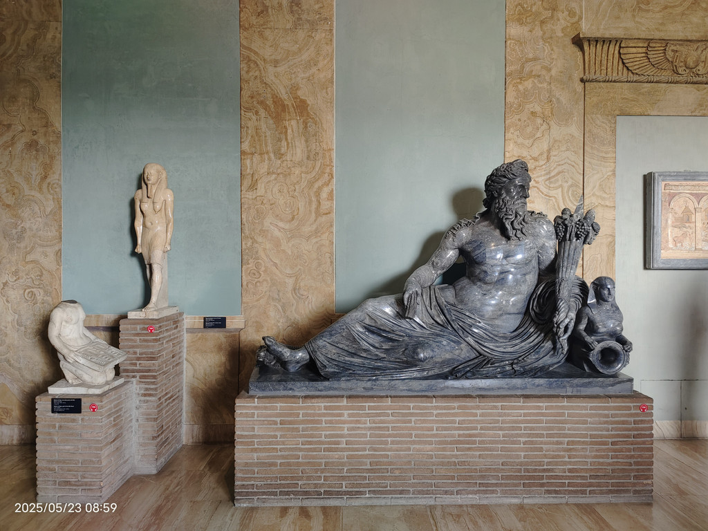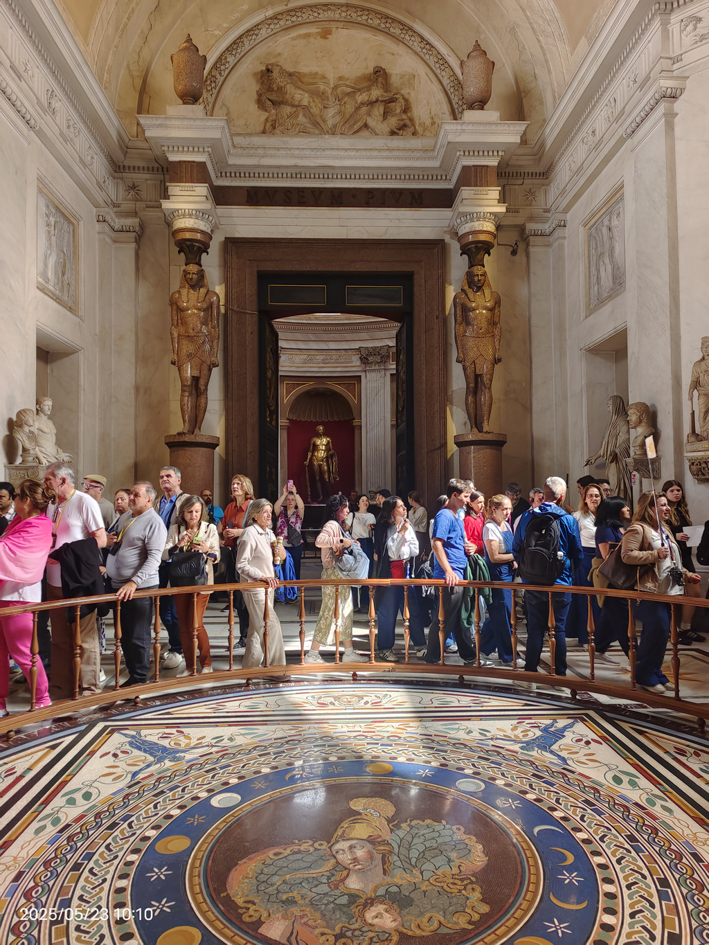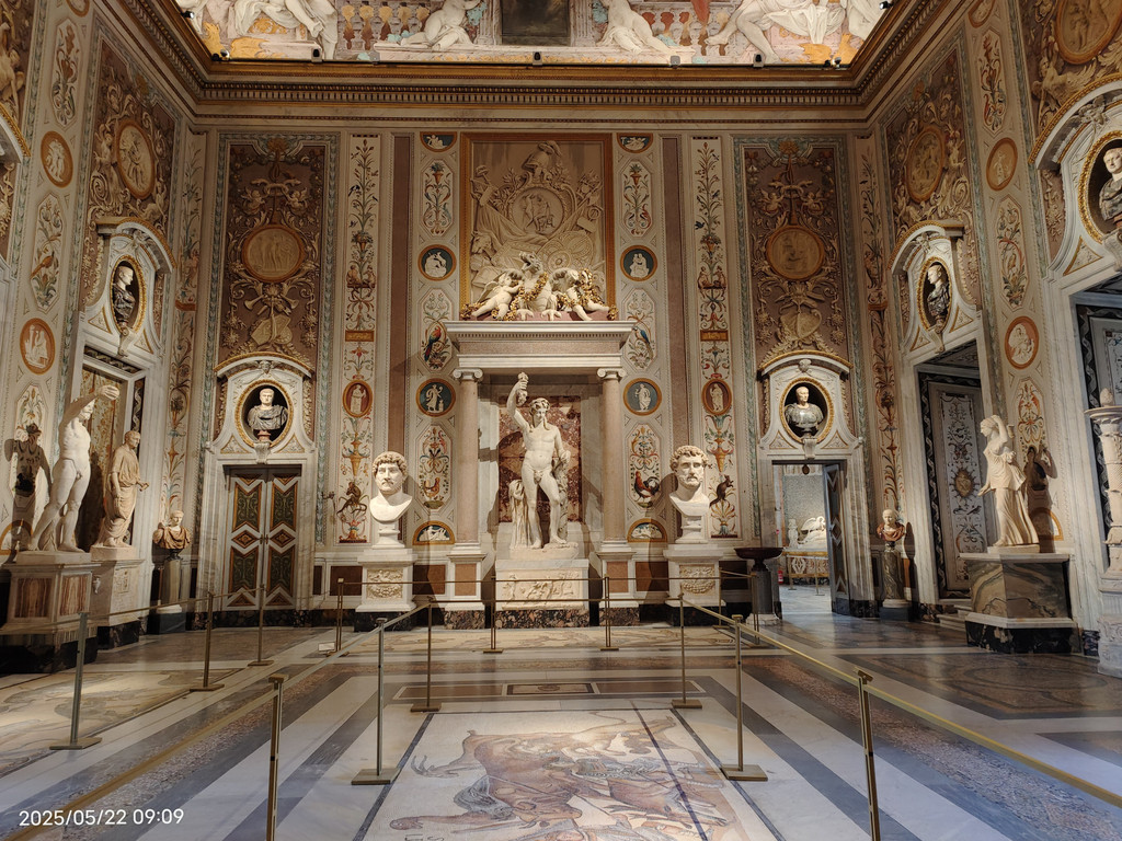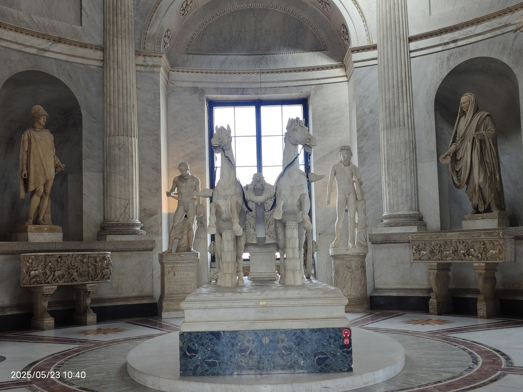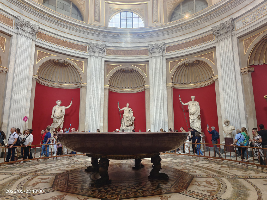 《圆形大厅》展出的是一些比较大的雕塑,大厅中心是一个古罗马浴盆,传说中尼禄的浴池,穹顶是仿造万神殿建的,地上是古罗马马赛克镶嵌画,非常壮观。