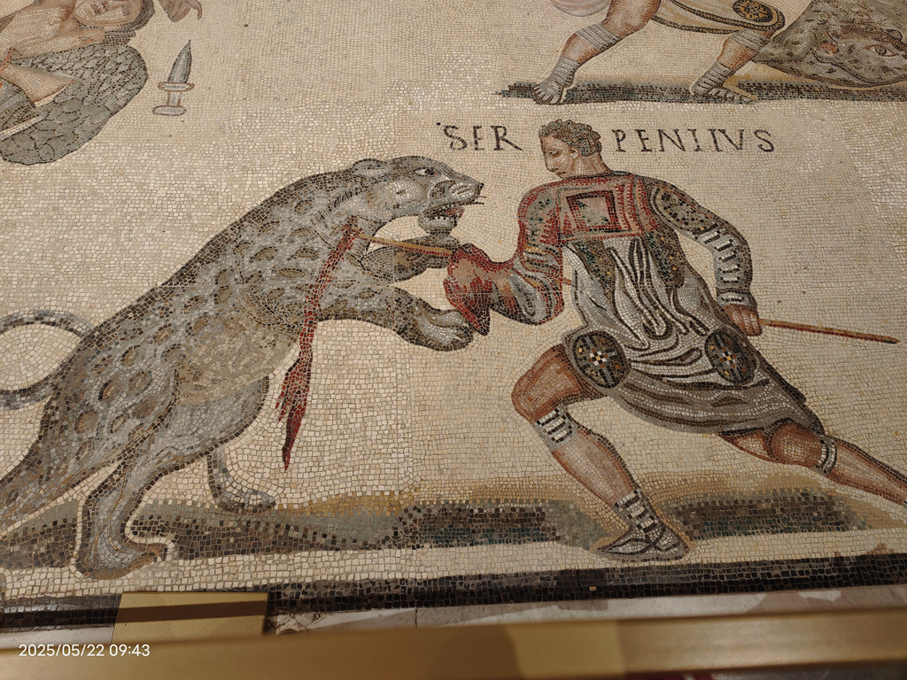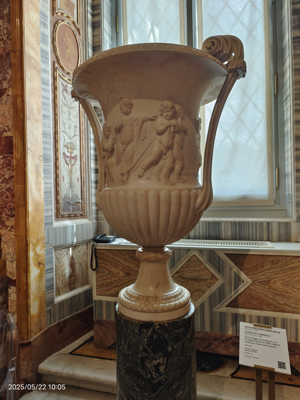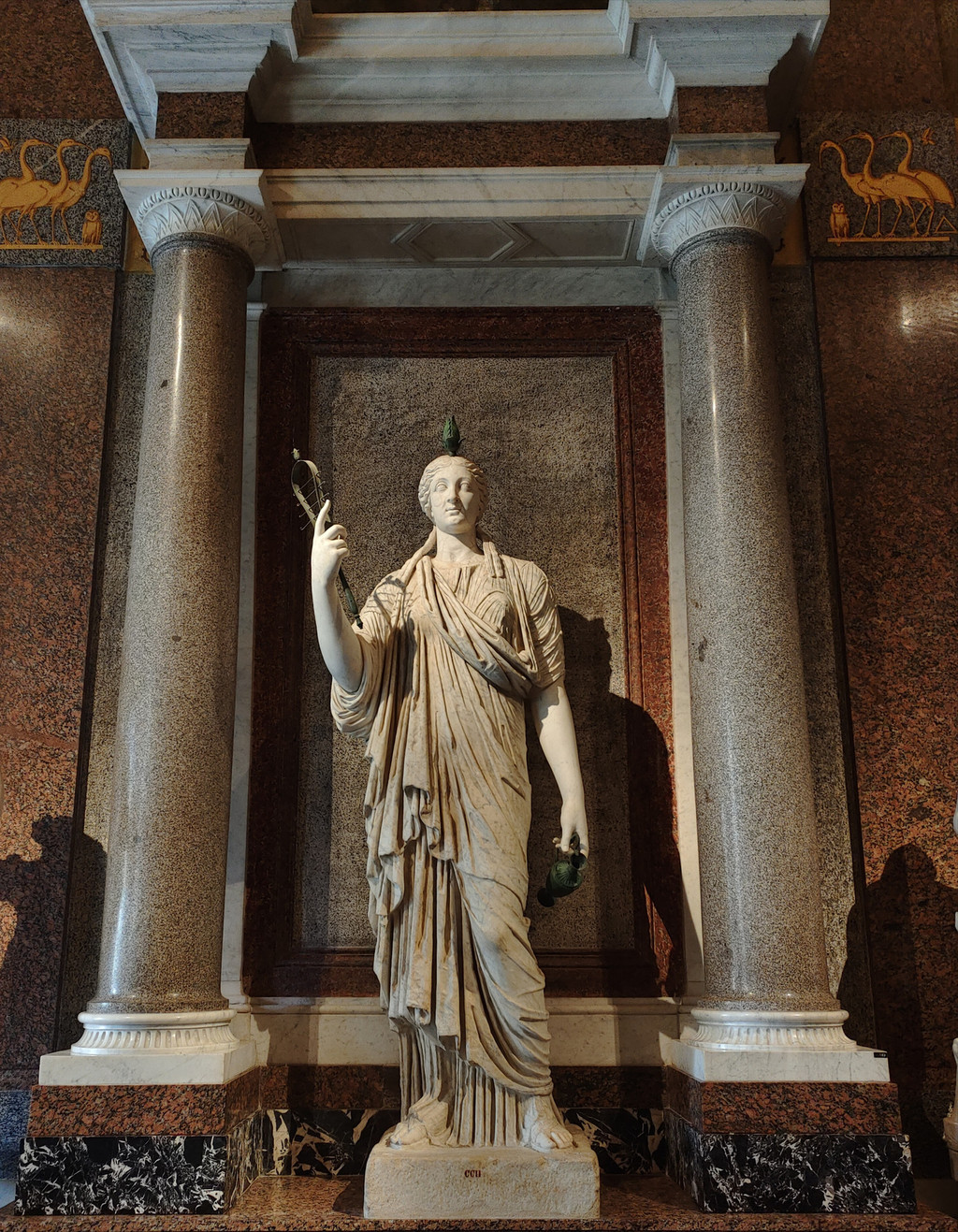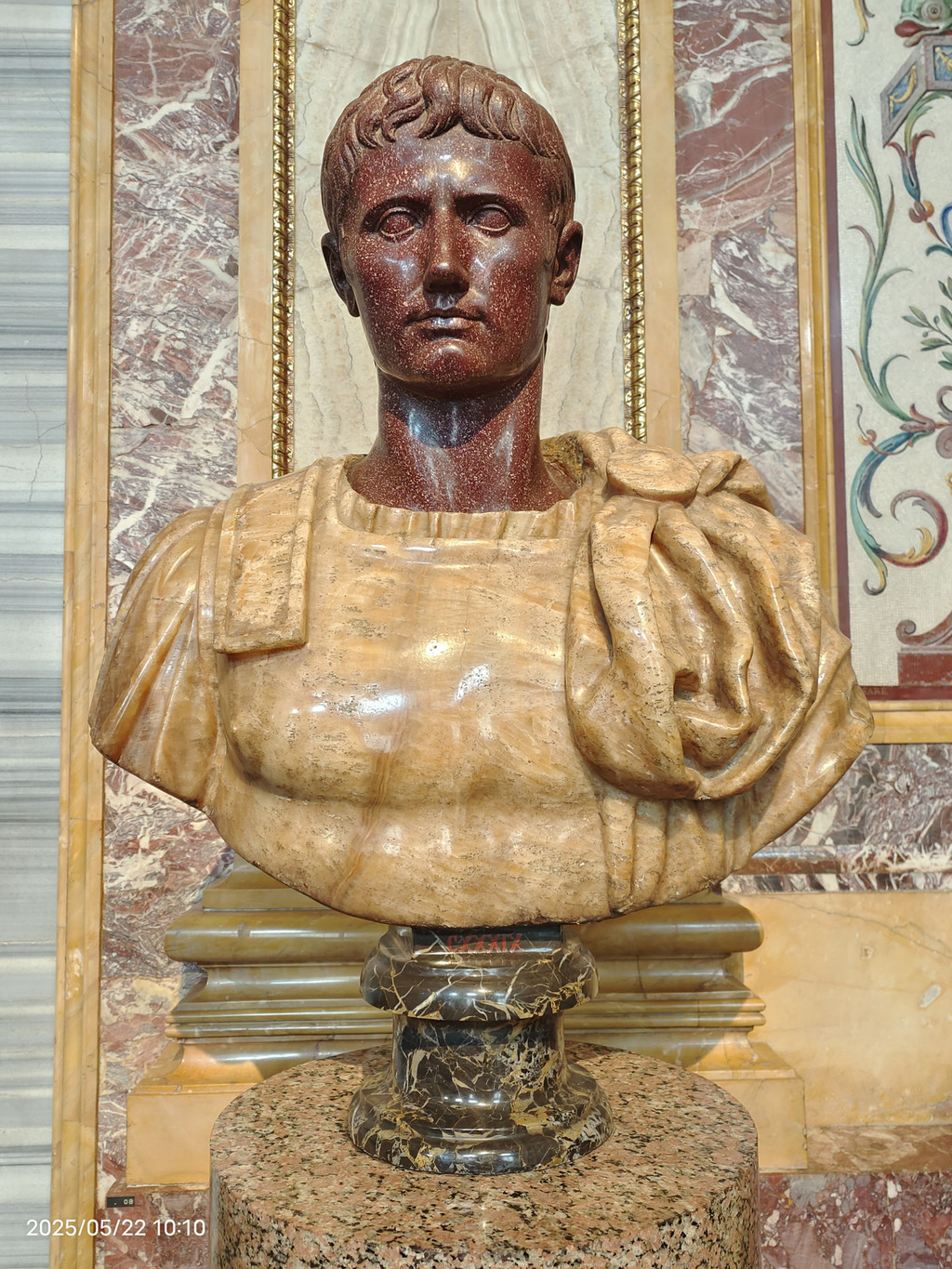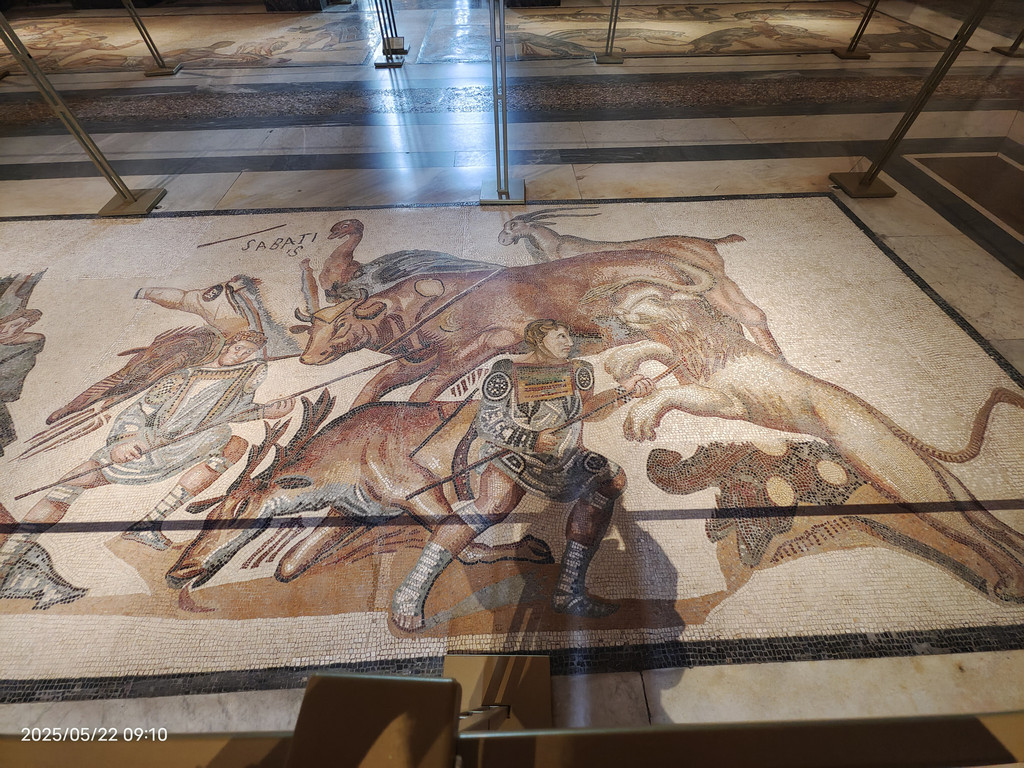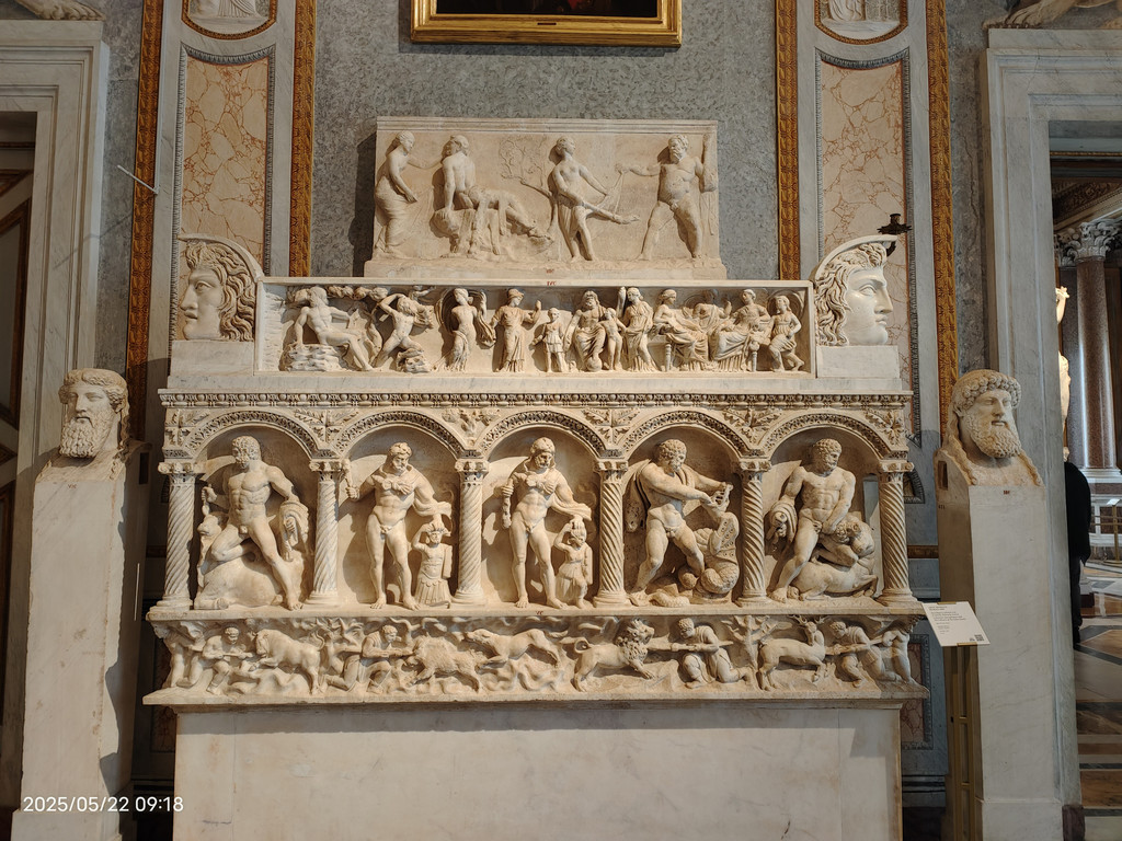 《圆形大厅》展出的是一些比较大的雕塑,大厅中心是一个古罗马浴盆,传说中尼禄的浴池,穹顶是仿造万神殿建的,地上是古罗马马赛克镶嵌画,非常壮观。