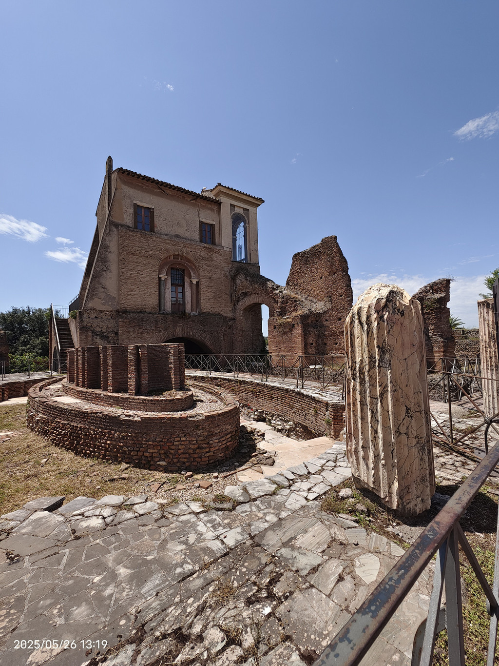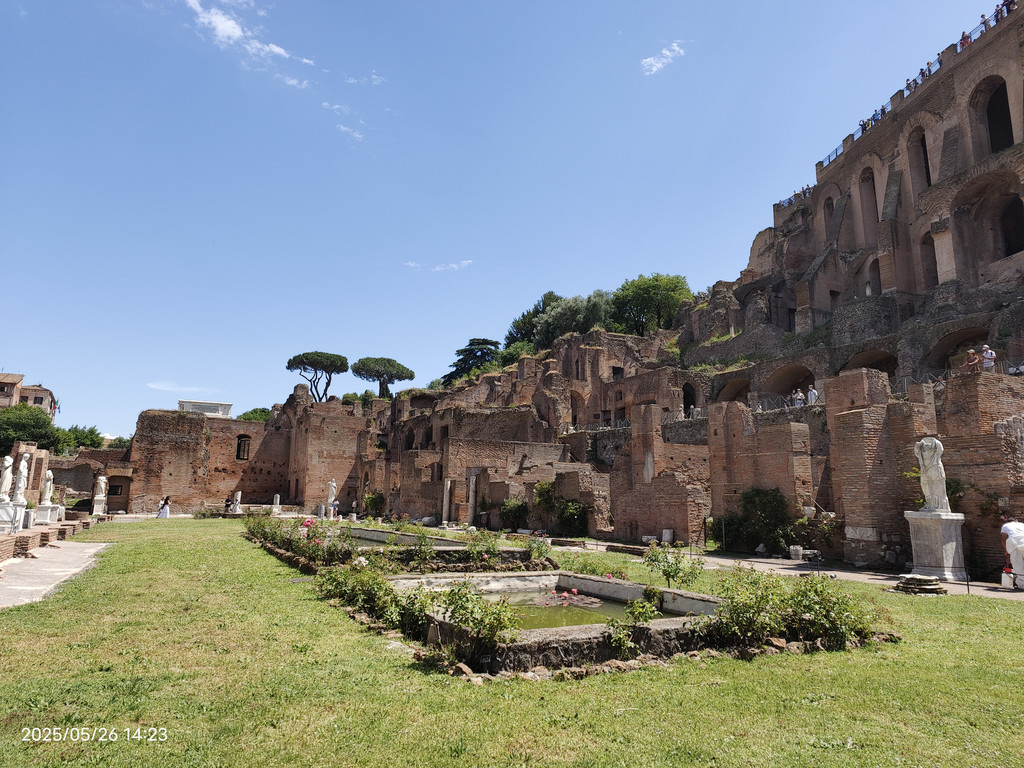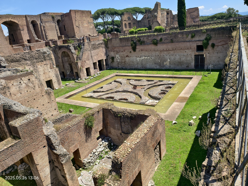 弗拉维宫是图密善行宫的一部分,由弗拉维王朝的提图斯皇帝于公元92年修建完成,中央庭院有一个八角形喷泉。