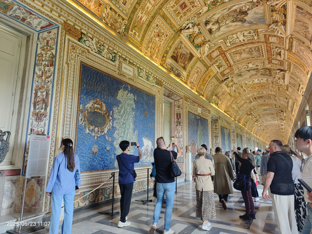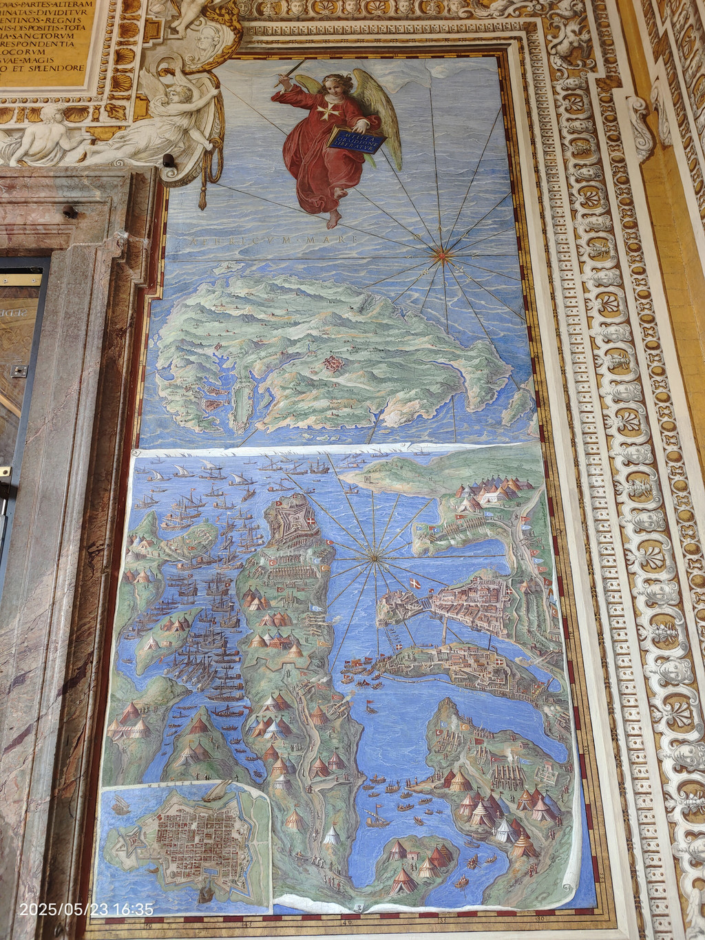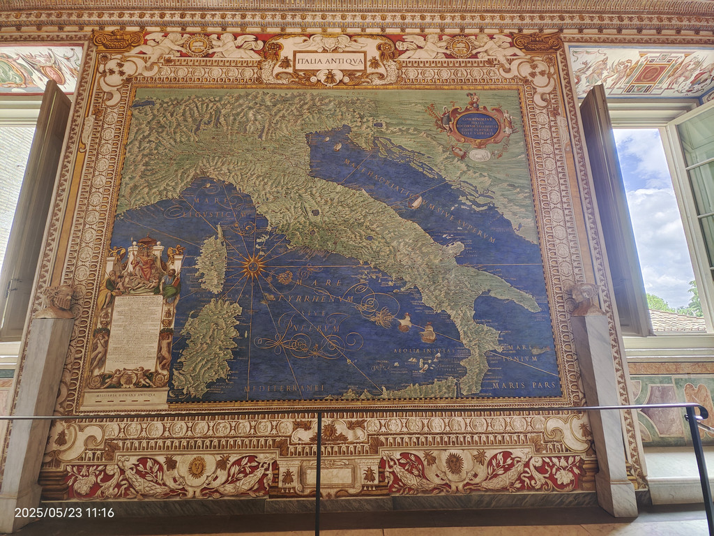 《地图廊》是梵蒂冈博物馆美景宫庭院西侧的一处走廊。公元1580年,天主教教皇额我略十三世亲自下令对使徒宫进行装饰。指定将该处走廊制作为挂满地图的地图廊。Ignazio Danti接受任务之后,花费了三年时间,才完成了长度达120米的走廊两侧的40幅地图壁画,还有走廊顶上精美的拱顶壁画。每幅壁画宽三米,高四米,描绘了当时意大利半岛各个领域及地中海上各主要岛屿(如马耳他岛、科孚岛、厄尔巴岛和特雷米蒂岛)和港口(威尼斯港、热那亚港、安科纳港和奇维塔韦基亚港)的地图。