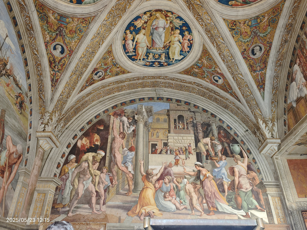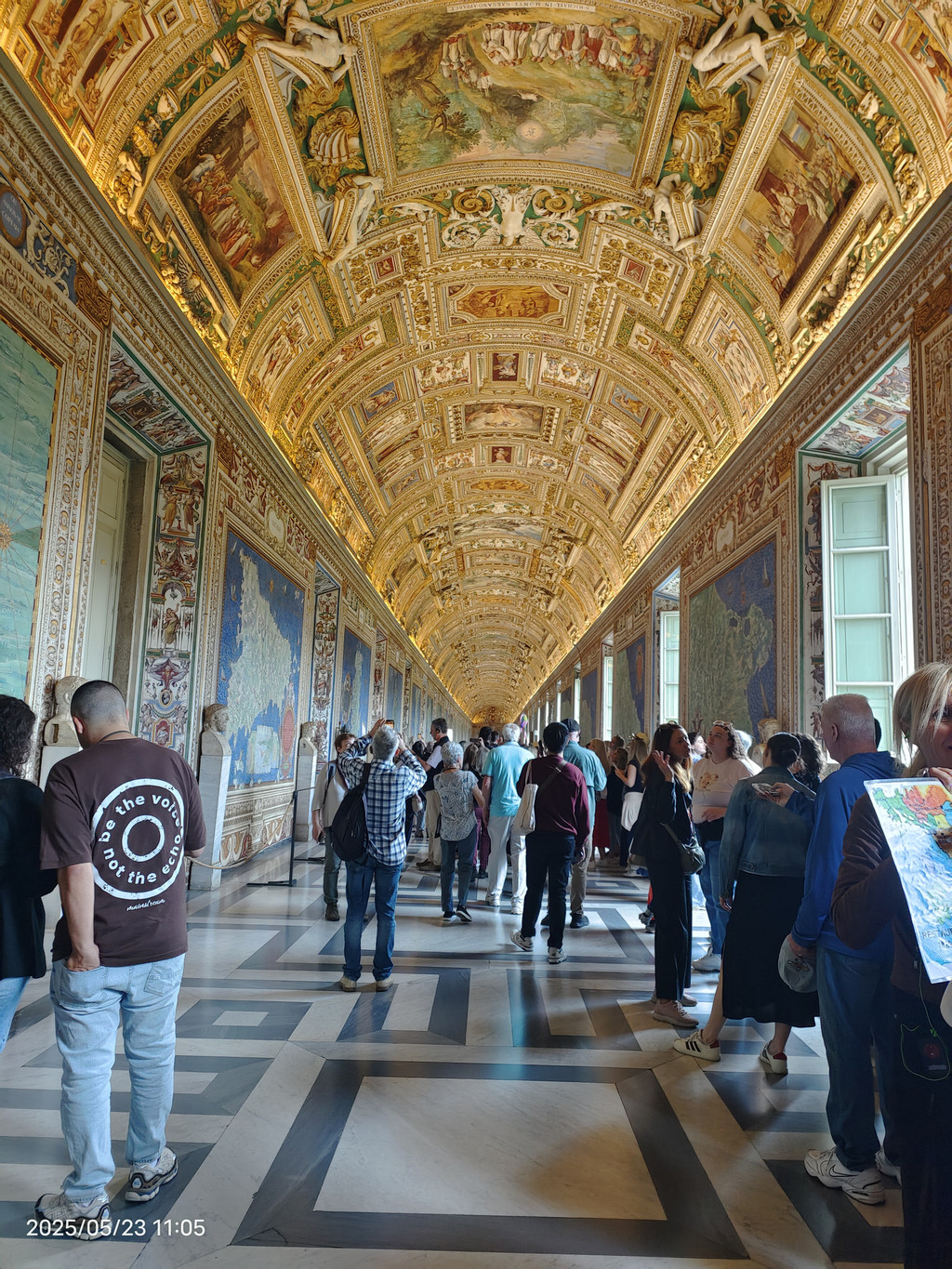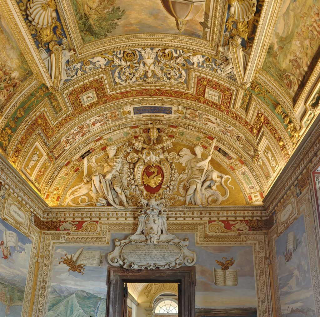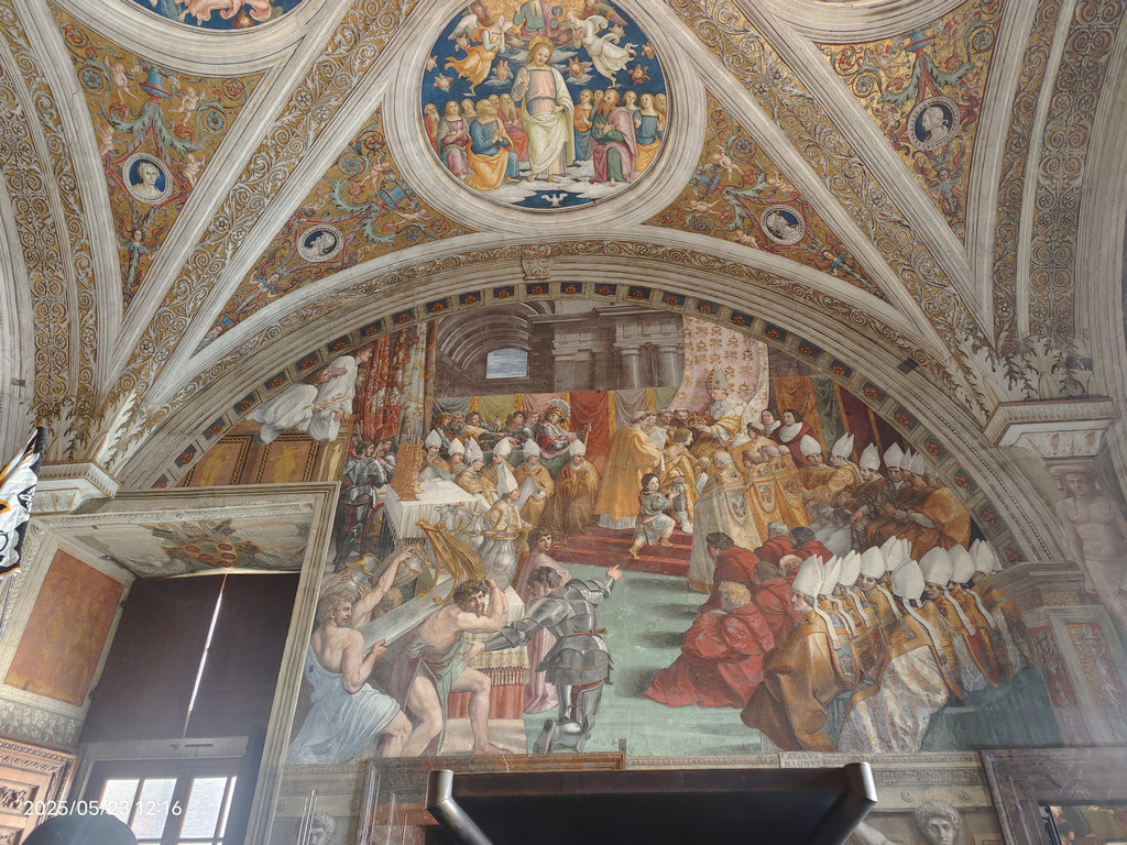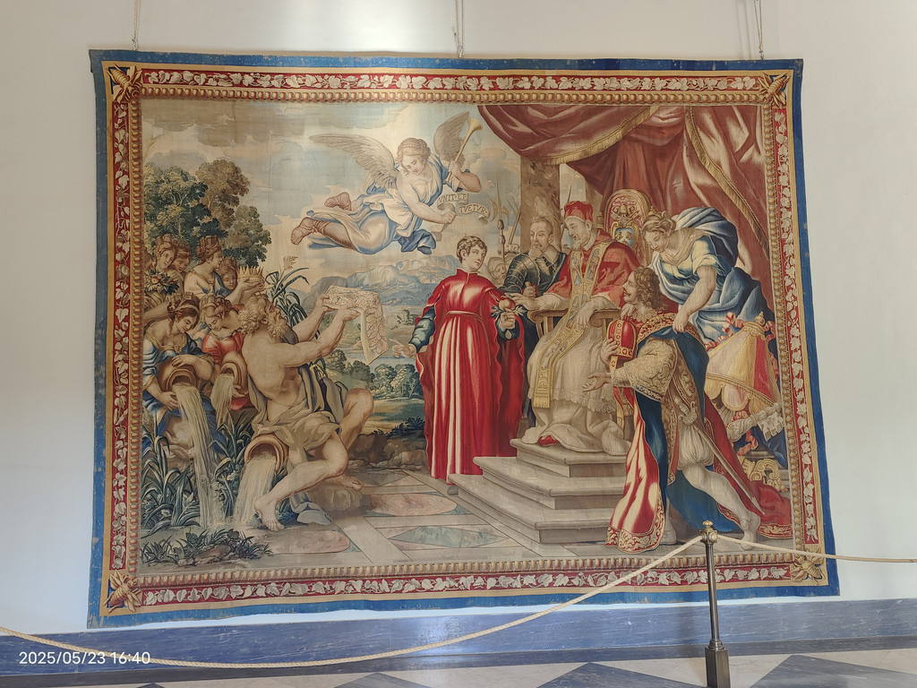 《挂毯室》是某一任教宗为了扩充展区,于外墙走廊加上屋顶而成,展区分为新与旧,旧挂毯区是希腊罗马织品,新挂毯区则是拉斐尔及其弟子设计,以耶稣故事为主题的壁毯,推荐一定要现场来看看,因为挂毯创作之时是没有纺织机的,所以你可以看到这些人工编织的精细度。