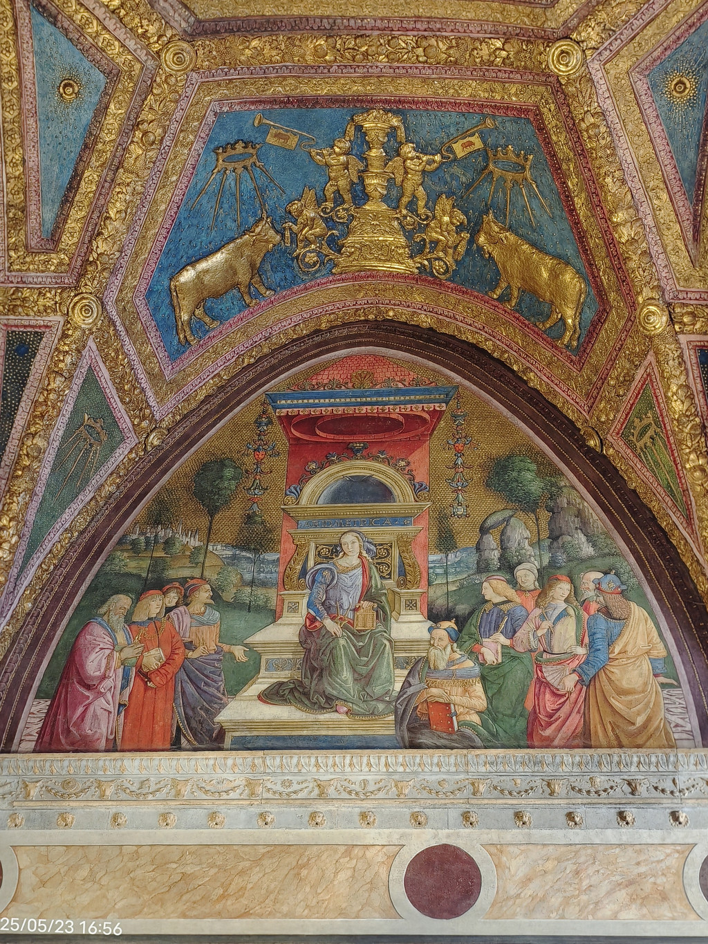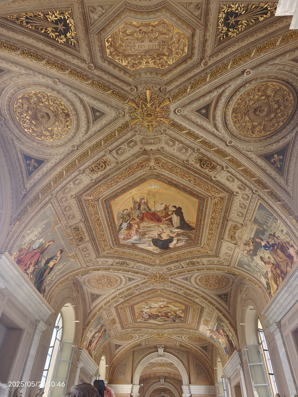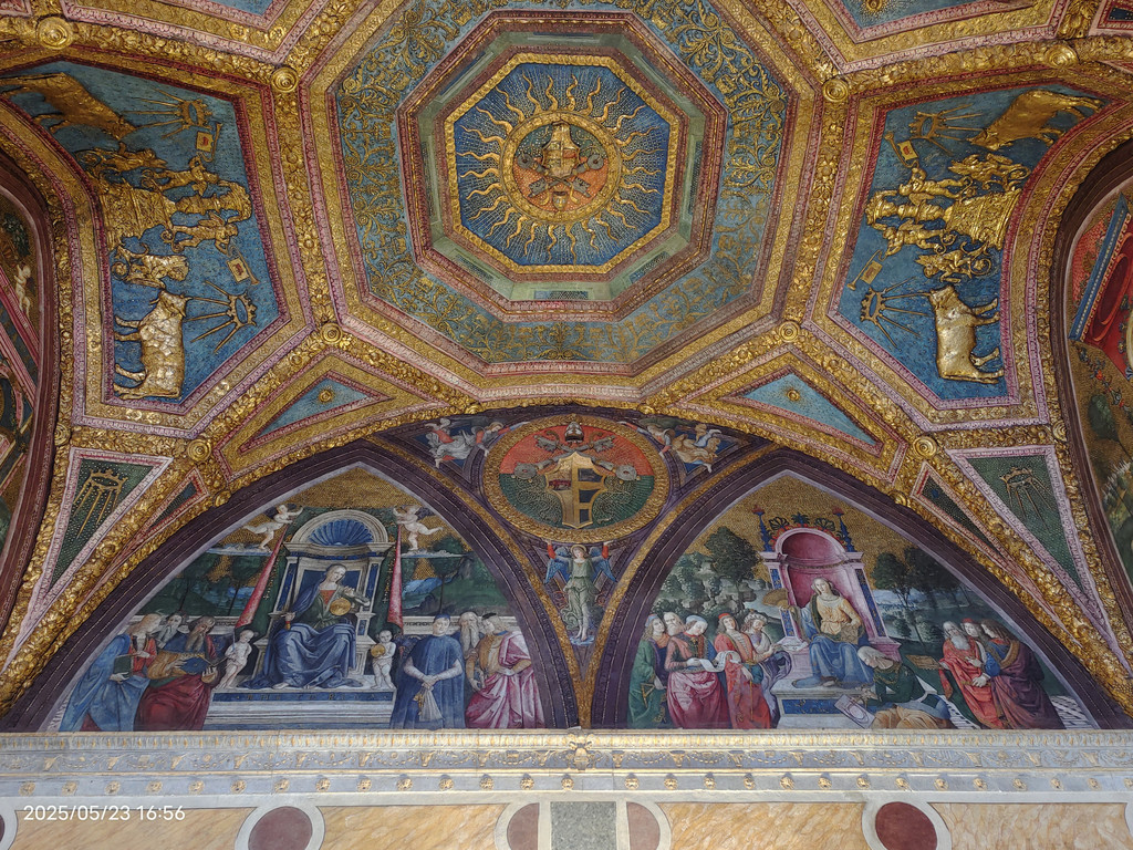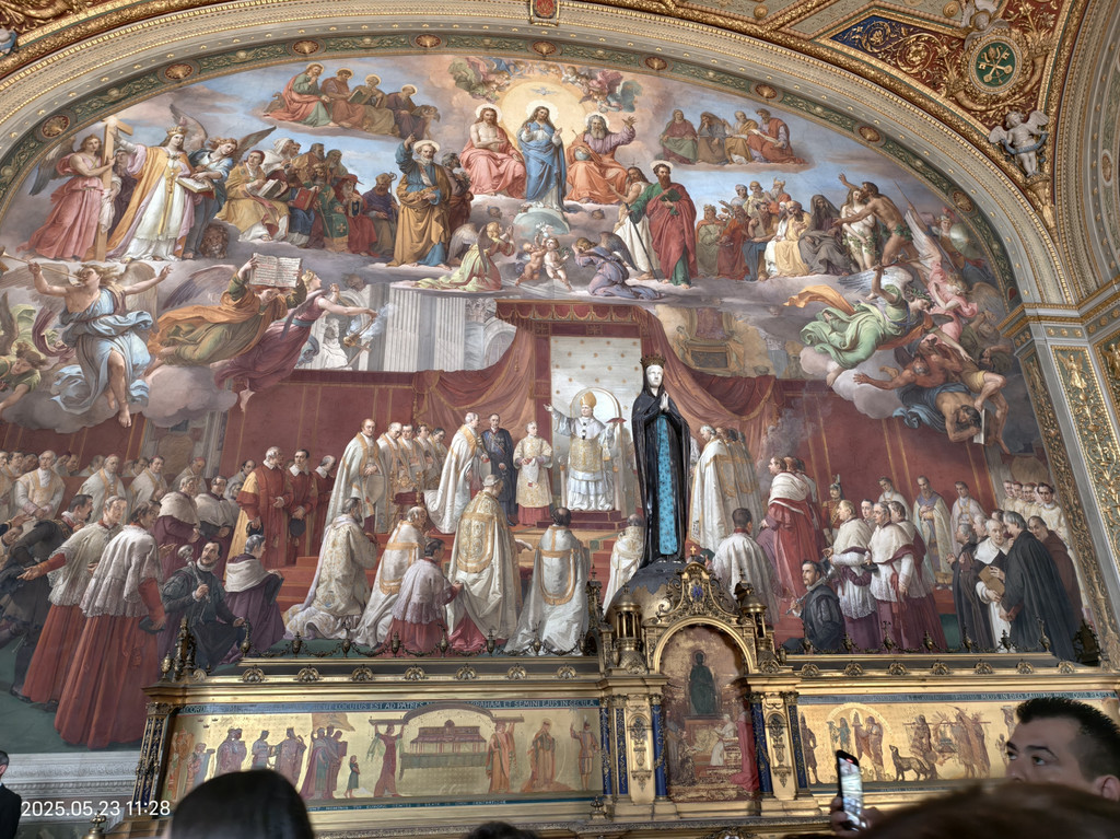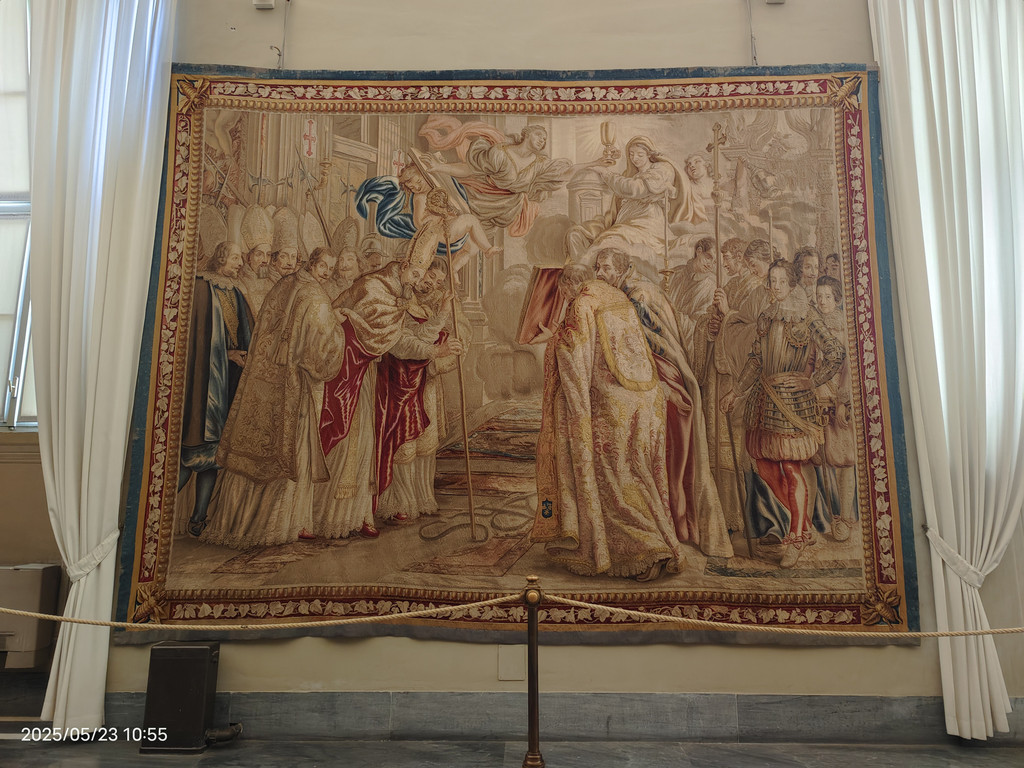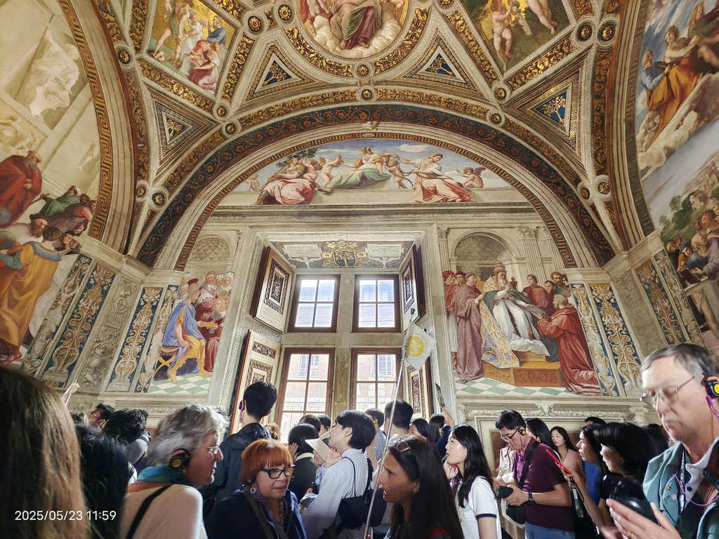 《挂毯室》是某一任教宗为了扩充展区,于外墙走廊加上屋顶而成,展区分为新与旧,旧挂毯区是希腊罗马织品,新挂毯区则是拉斐尔及其弟子设计,以耶稣故事为主题的壁毯,推荐一定要现场来看看,因为挂毯创作之时是没有纺织机的,所以你可以看到这些人工编织的精细度。