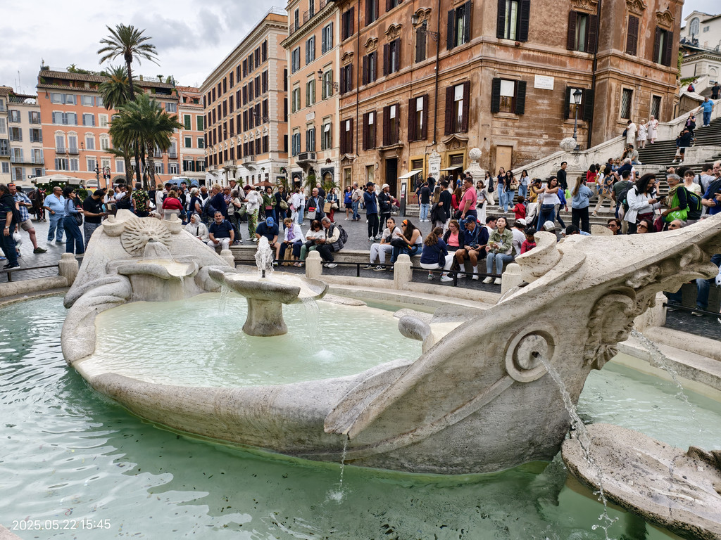 这座喷泉是贝尔尼尼父亲的作品,创意来自于特韦雷河的一次决堤,一只小舟被水推到这里。